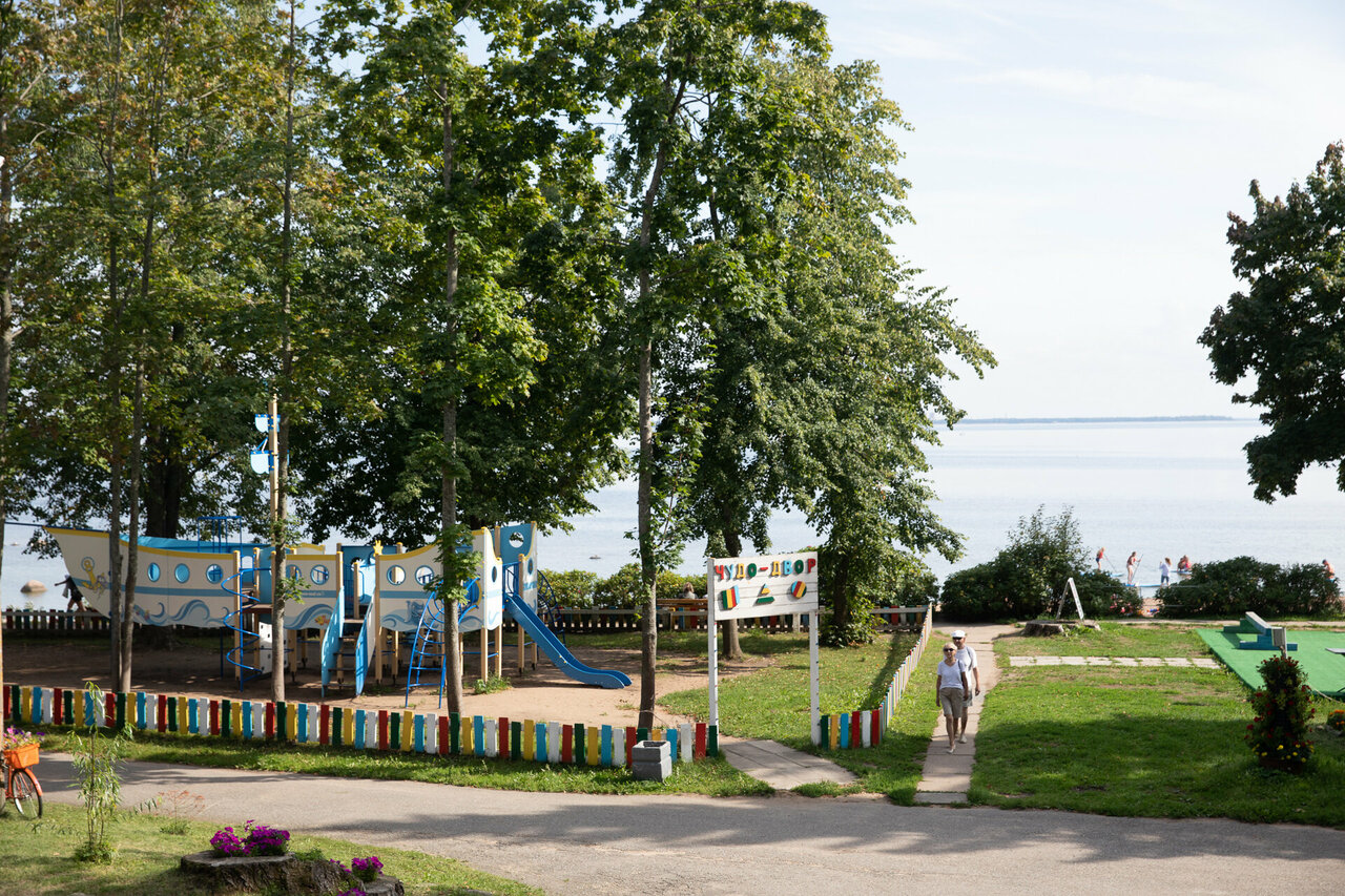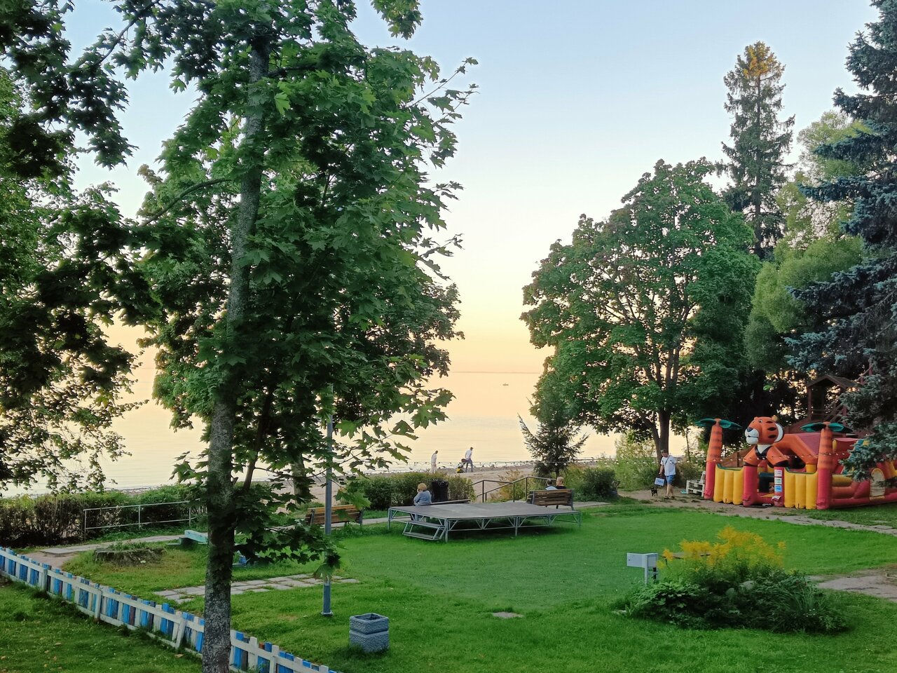 Отличный очень вкусный ресторан. Чистые и уютные номера. И на первой линии от моря. На берегу приятная природа — сосоны и очень красивые и ароматные кусты шиповника. Много скамеек и гамаки.очень красиво. Есть куда прогуляться по берегу. Интересная детская программа. Хорошая сауна и массаж. Слишком хорошая слышимость между номерами.
