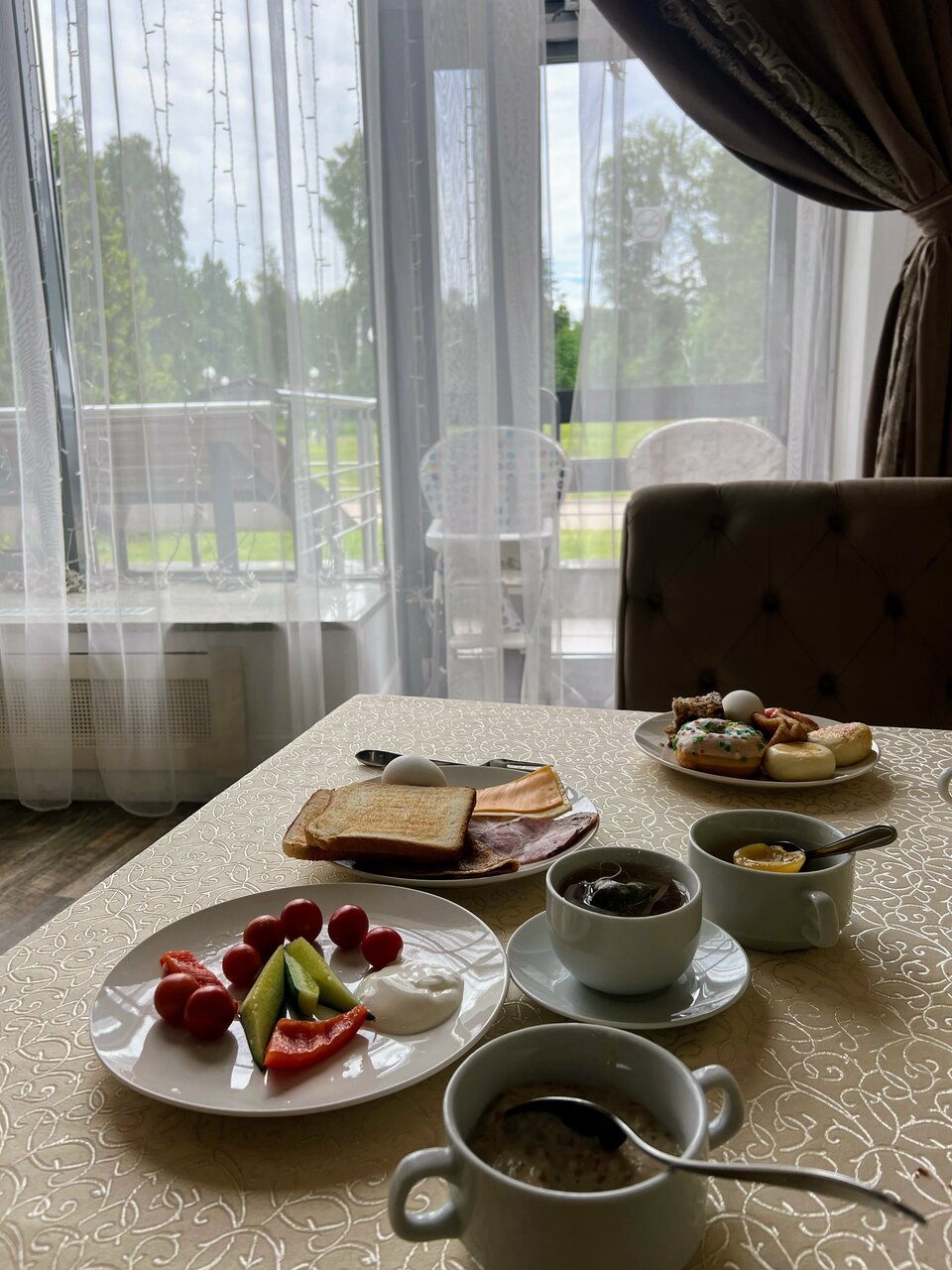 06,01,2024,Приехали перезагрузиться.Отдохнуть от городской суеты…И у нас это получилось.Номера чистые уютные очень теплые несмотря что на улице -25.Ходили на ужин в ресторан…Обслуживание очень доброе внимательное и в то же время ненавязчивое.Брали салаты мороженое соки и конечно т.к.были перед рождеством и еще чуть чуть крепкого.Все очень хорошо приготовлено и вкусно.Завтраки?Большой выбор еды много сладкого..ВСЕ ОЧЕНЬ ВКУСНО.Посетили спа салон …Девочки работают там очень внимательные добрые…мастера своего дела.Бассейн..бассейн чистый, комфортной температуры, чудесный вид из окна. Замечательное место. Цена-качество соответствуют. Хорошие номера с халатами и тапочками,со всеми средствами для душа. В номере есть чайник. . Можно заказать еду в любое удобное время в номер. Большая территория для прогулок и до Финского залива минут 10 пешком