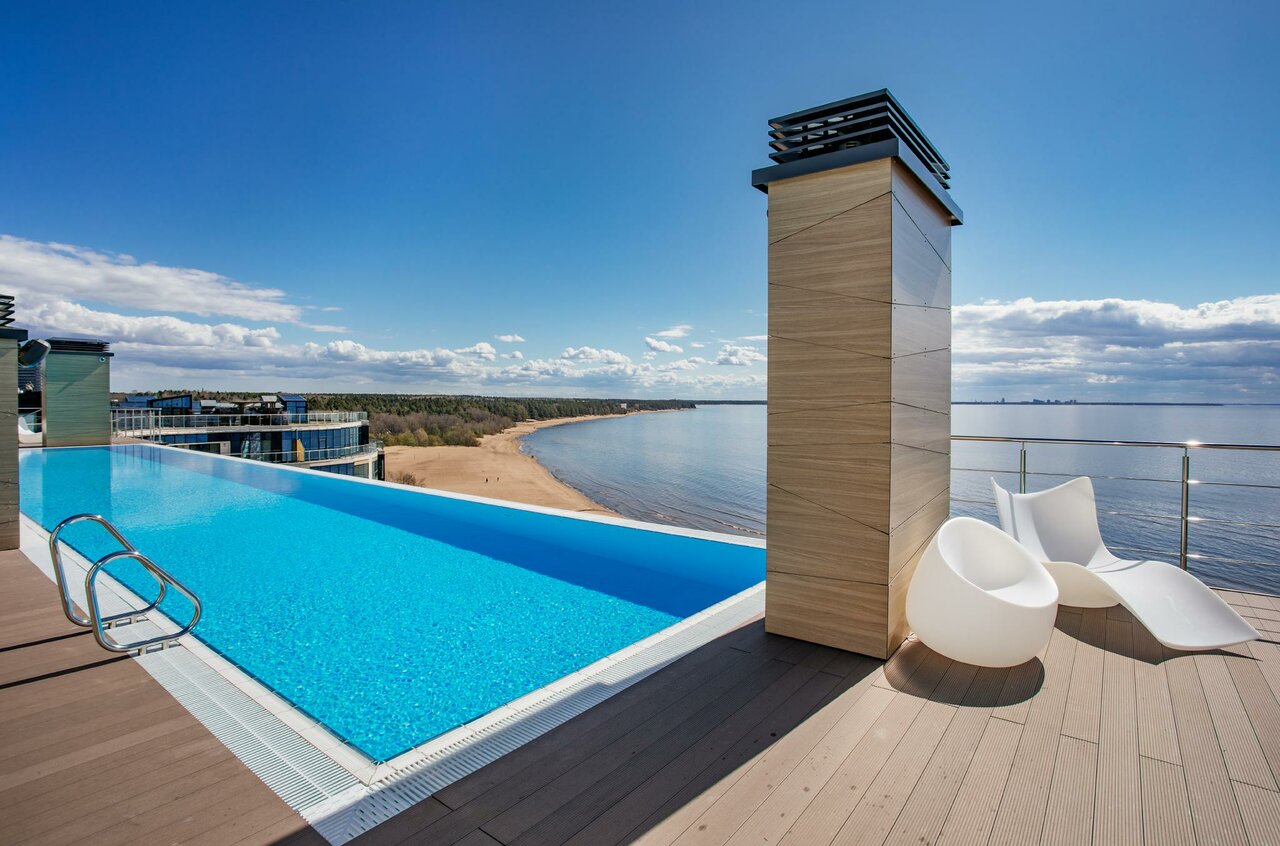 Дополнительно: бассейны (крытый и сезонный), тренажёрный зал, spa, сауна, хаммам, баня, лечебно-оздоровительный комплекс, салон красоты, ресторан, конференц-зал, йога, прокат велосипедов.