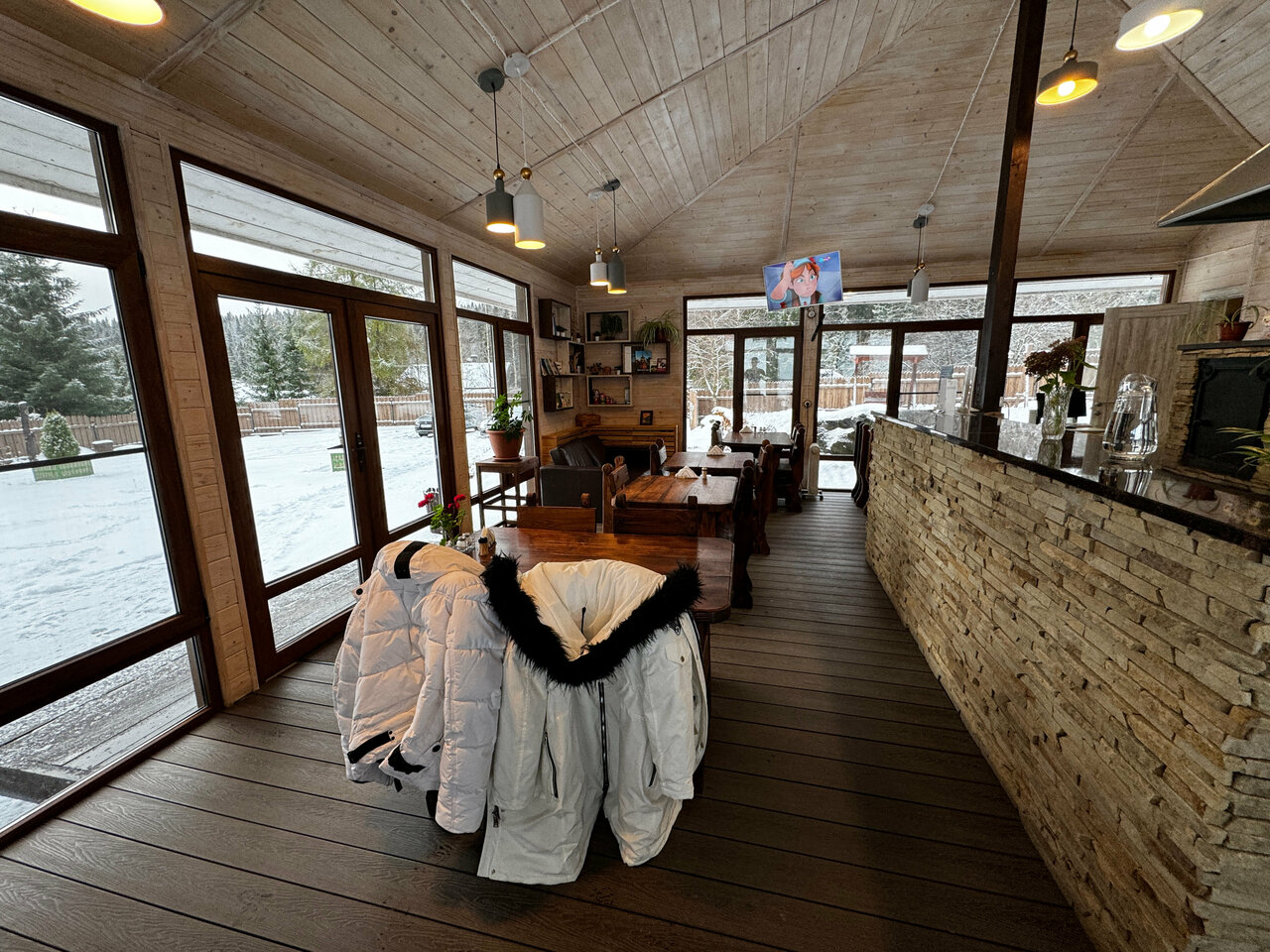 В целом нам все понравилось с условием, что мы просто переночевали, гостеприимные хозяева и девушка в кафе, на этом плюсы закончились. Минусы: завышенная стоимость за то что переночевать, 5 тыс. руб., слышимость соседей зашкаливает, средств для гигиены нет, фена тоже нет, кафе работает до 7 вечера, дальше если не успели, то остались голодными, ближайший магазин в 1,5 км примерно, парк в 300 метрах, но вход в 2,5 от него, так что если вы не на машине имейте ввиду, отопление включают только на ночь и в 7 утра отключают, принимала душ, весь пол в воде, т.к. вода из под донна с трудом вытекала в канализацию и из туалетной комнаты очень сильно воняет канализацией