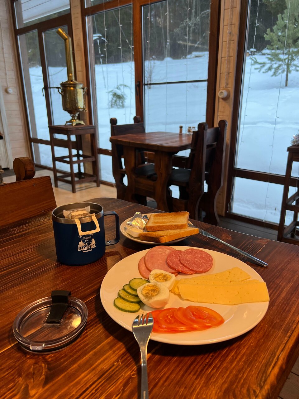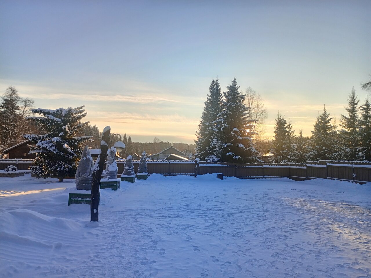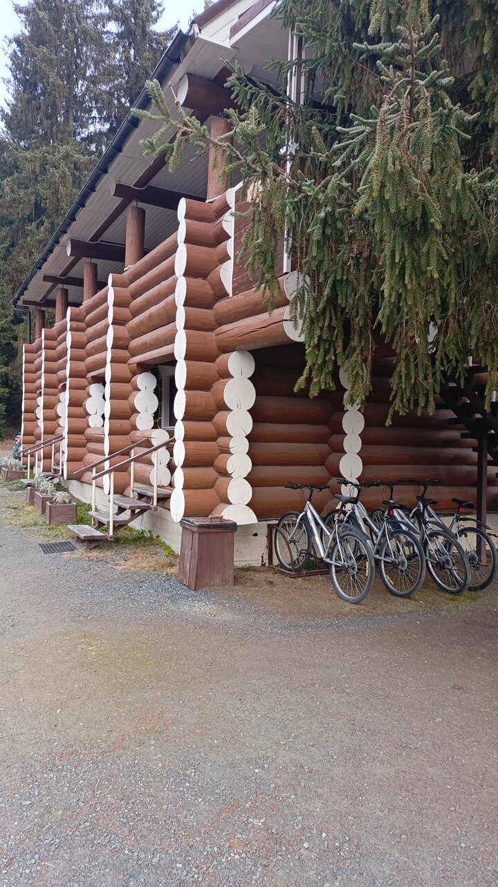 Были здесь с мужем на Рождество. Очень уютное местоположение! Вокруг ели высокие! Красиво очень! Воздух! Все постройки из сруба, жить в таком помещении- удовольствие! В номере очень тепло! Чисто! Постель и полотенца в идеальном состоянии! Душевая кабина, умывальник, унитаз, как новые, горячая вода всегда! Завтраки приличные: чай, кофе, овощная тарелка, сырная, мясная ( колбасно-ветчинная), хлеб тостовый( рядом тостер), масло. Всегда есть калитки ( местные открытые пирожки с разной, северной ягодой и удивительно тонким тестом)! На ресепшен есть телефон такси. Благодарим хозяев за гостеприимство! Летом или в сентябре приедем ещё!!!