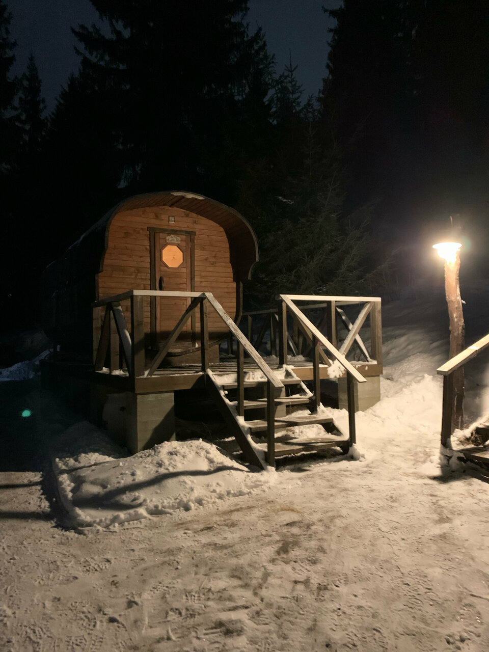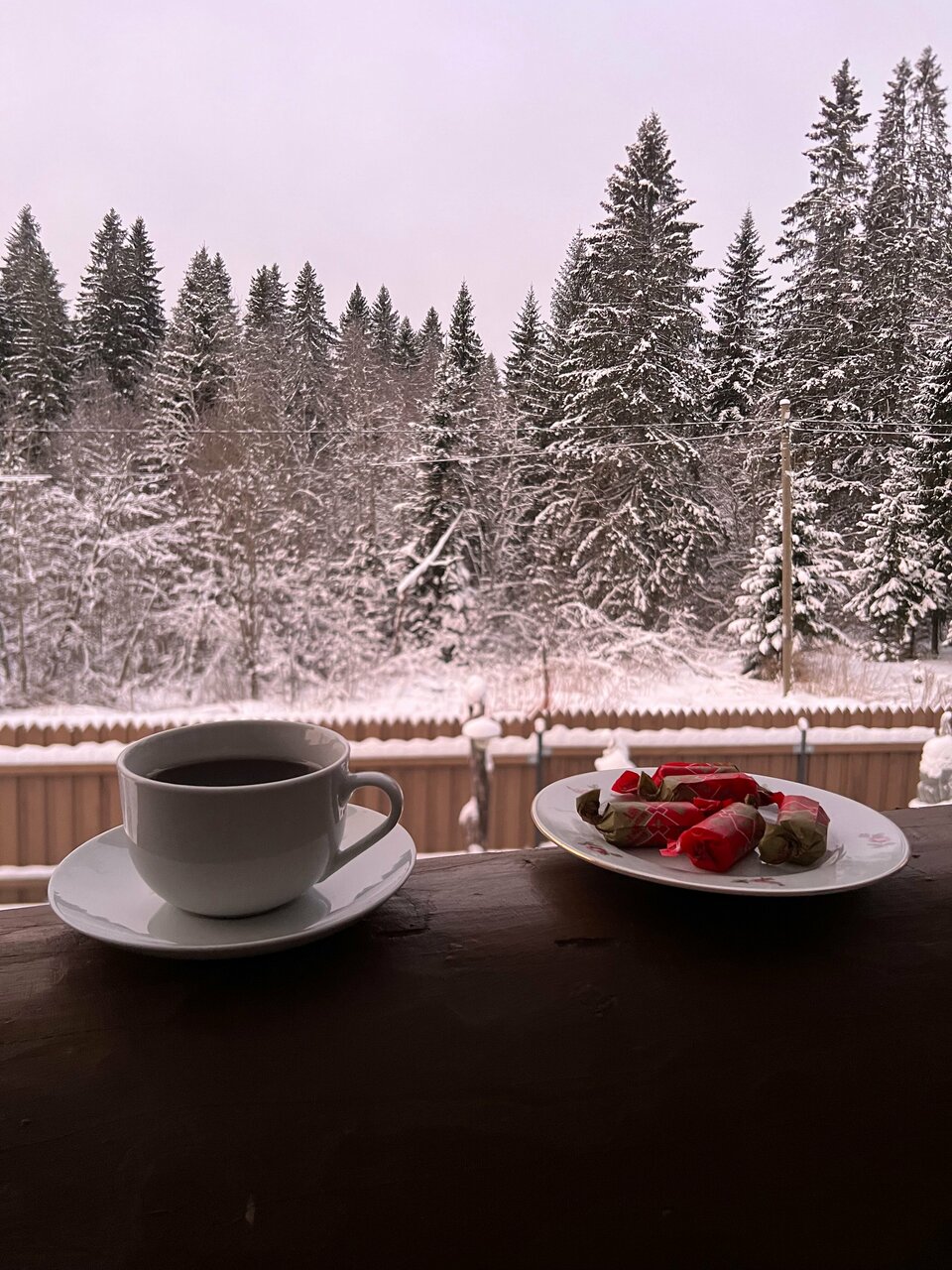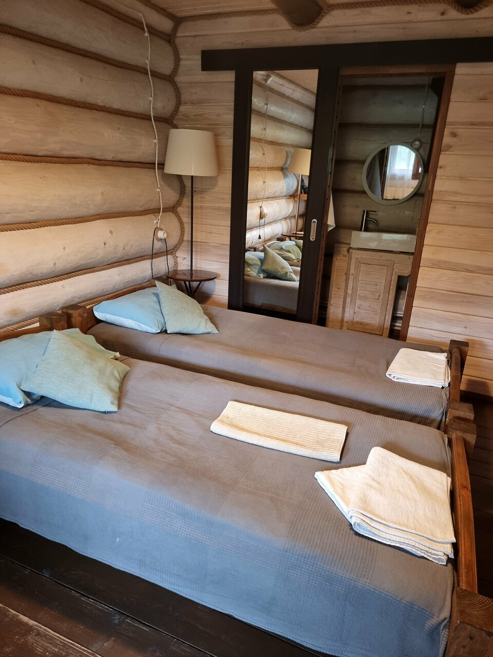 Были здесь с мужем на Рождество. Очень уютное местоположение! Вокруг ели высокие! Красиво очень! Воздух! Все постройки из сруба, жить в таком помещении- удовольствие! В номере очень тепло! Чисто! Постель и полотенца в идеальном состоянии! Душевая кабина, умывальник, унитаз, как новые, горячая вода всегда! Завтраки приличные: чай, кофе, овощная тарелка, сырная, мясная ( колбасно-ветчинная), хлеб тостовый( рядом тостер), масло. Всегда есть калитки ( местные открытые пирожки с разной, северной ягодой и удивительно тонким тестом)! На ресепшен есть телефон такси. Благодарим хозяев за гостеприимство! Летом или в сентябре приедем ещё!!!