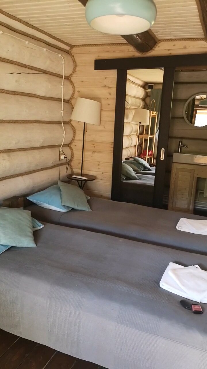 Из + это самое близкое место переночевать от Рускеала. Камерно, уютно. Из — шумоизоляция, точнее не отсутствие. Но когда целый день гуляешь, Вобщем-то и это не проблема)
