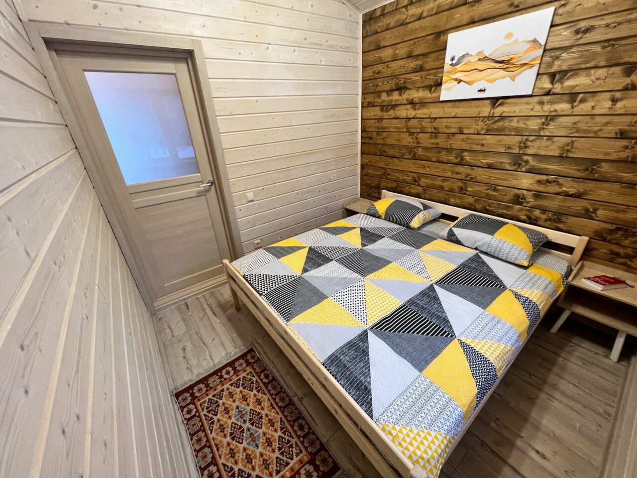Очень чистый, уютный домик. Оформлен с душой. Постели заправлены приятным бельём, удобный матрас. В ванной мыло, гели, шампунь, фен. На кухне есть всё как дома. Всей семьёй остались довольны. Если цель посетить Рускеалу не спеша, то это отличное место для отдыха, которое находится в пяти минутах на машине от парка.