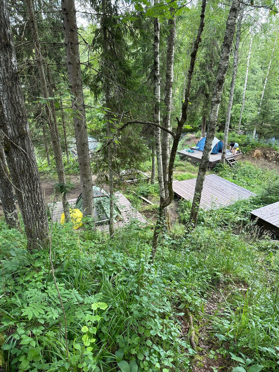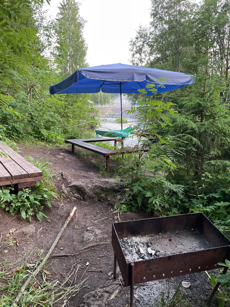 Отличное месторасположение, очень красивая местность, есть места для палаток. Мы жили в номере, слышимость высокая и теплой воды иногда не хватало, но в целом очень хорошо. Рядом место, где можно перекусить, пиво и шаурма отличные Пешком можно дойти до горного парка Рускеала и мраморного карьера. Замечательные места