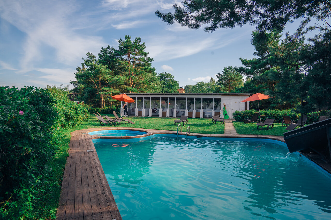 - Наличие бассейна (теплый даже в холод).