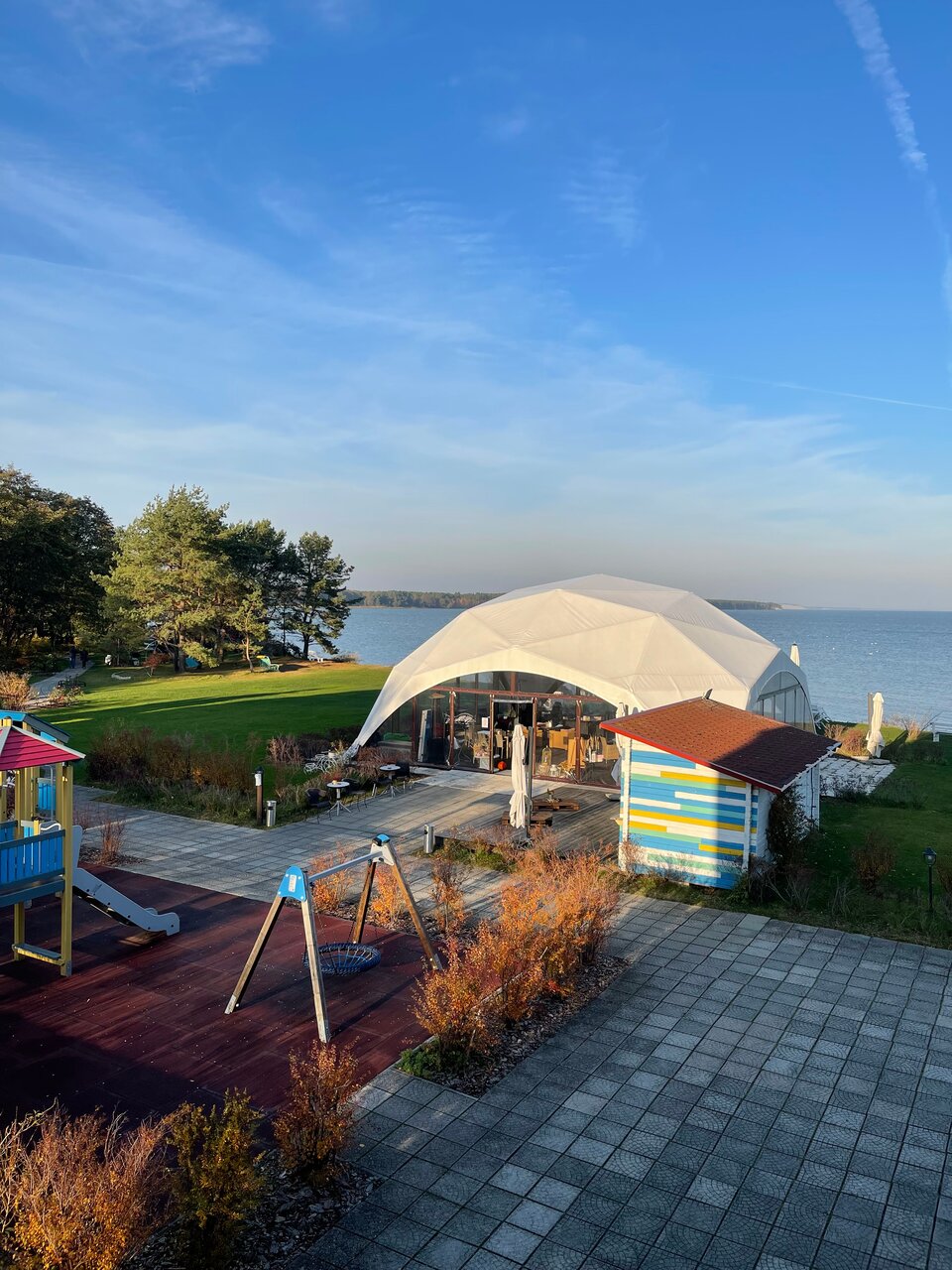 Крутой отель. Всё чистенько и на высшем уровне! Бассейн отдельный плюс. Вода теплая, на улице 8С в бассейне кайф, купались 31.10 Территория ухоженная, много скамеек, качелей, всё в зелени. В ресторане интерьер оформлен со вкусом.