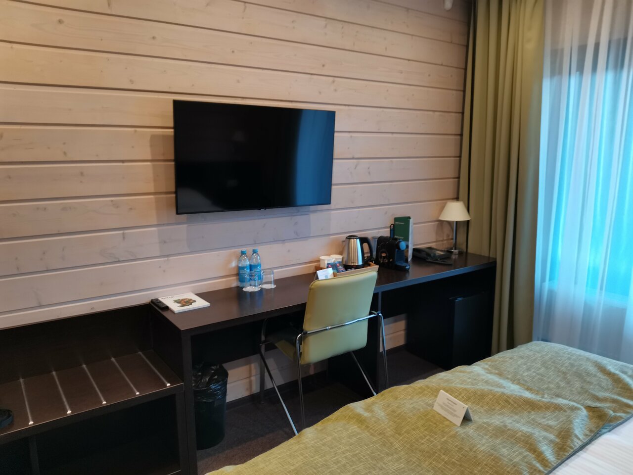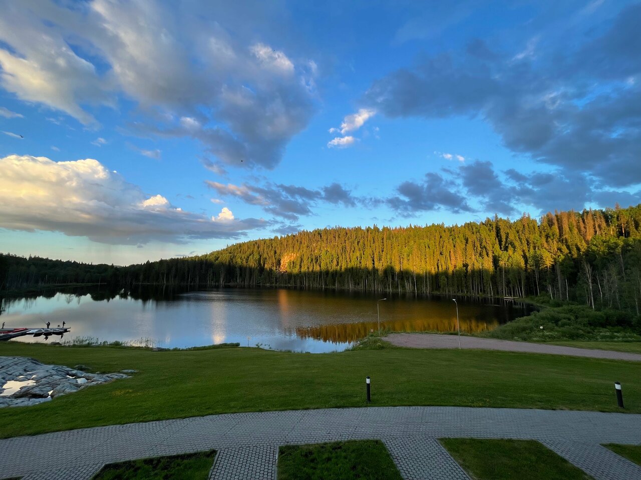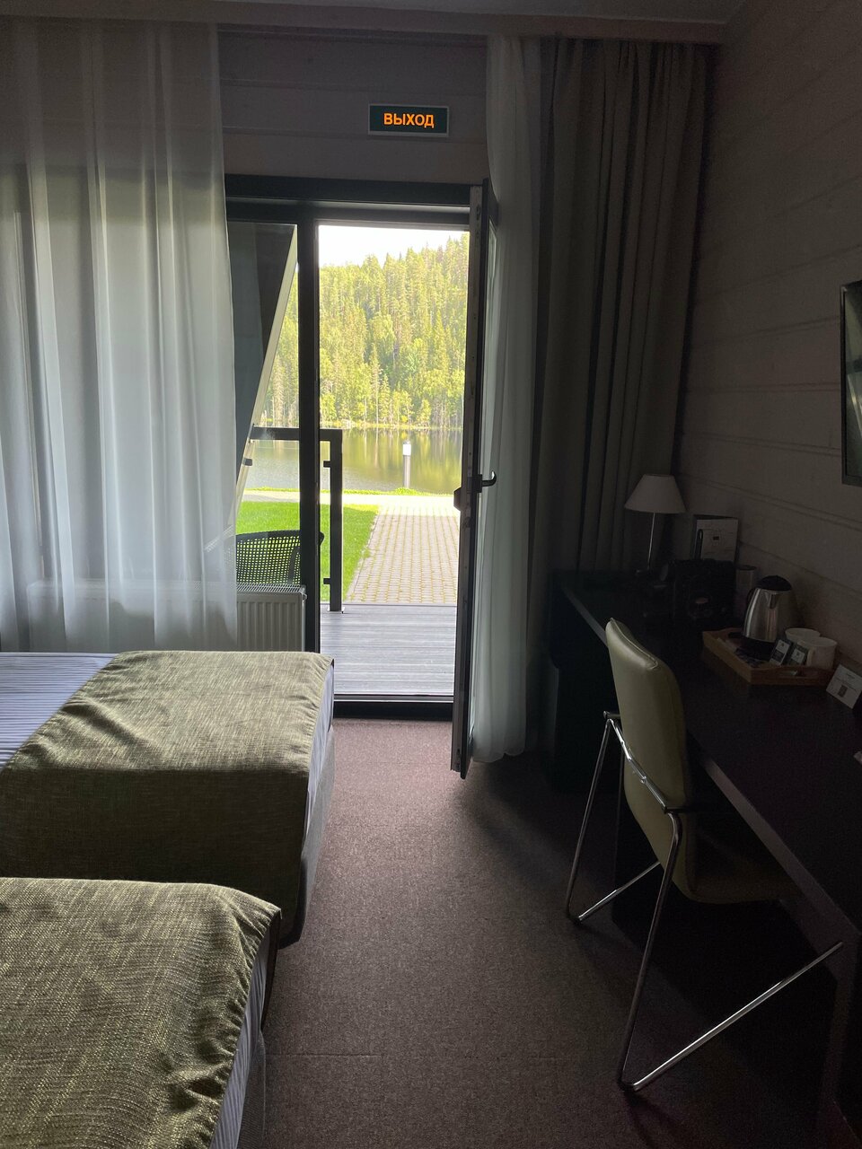 Все очень понравилось. Номер был на 1 этаже с шикарным видом и выходом на озеро. Классно было сидеть на террасе. В номере чисто, уютно, сантехника работала исправно. На завтрак приятно пройтись по лесу. Выбор в ресторане для нашей семьи был достаточным.