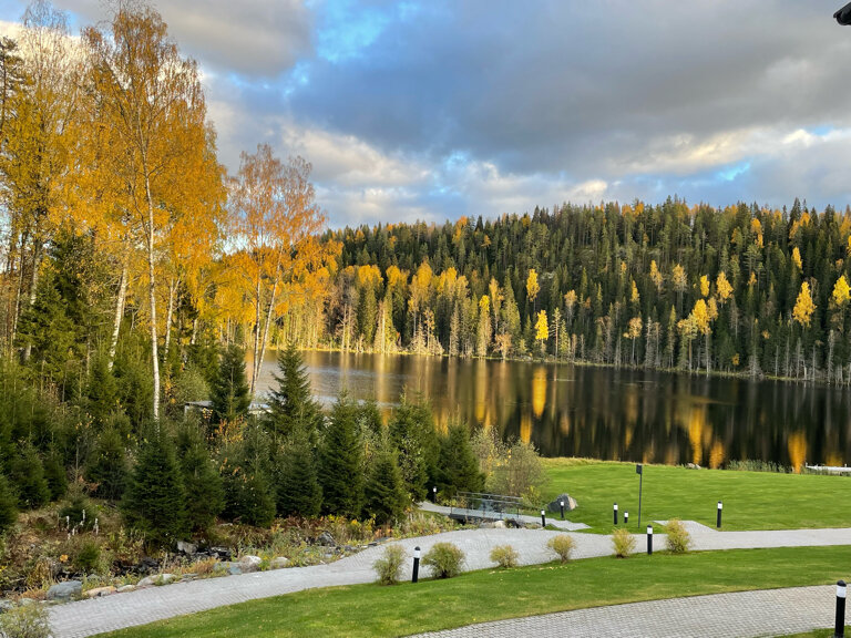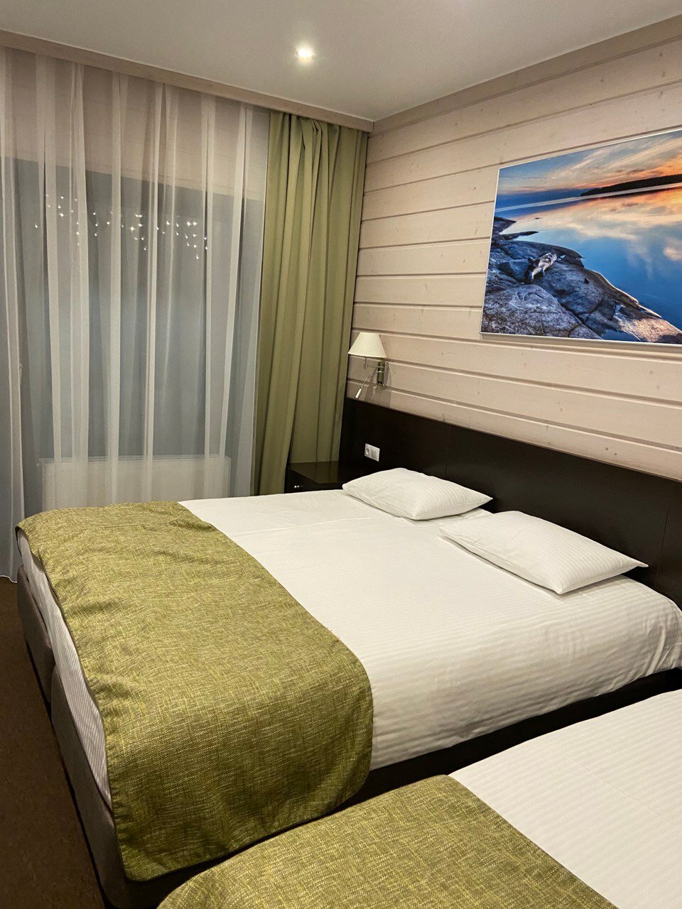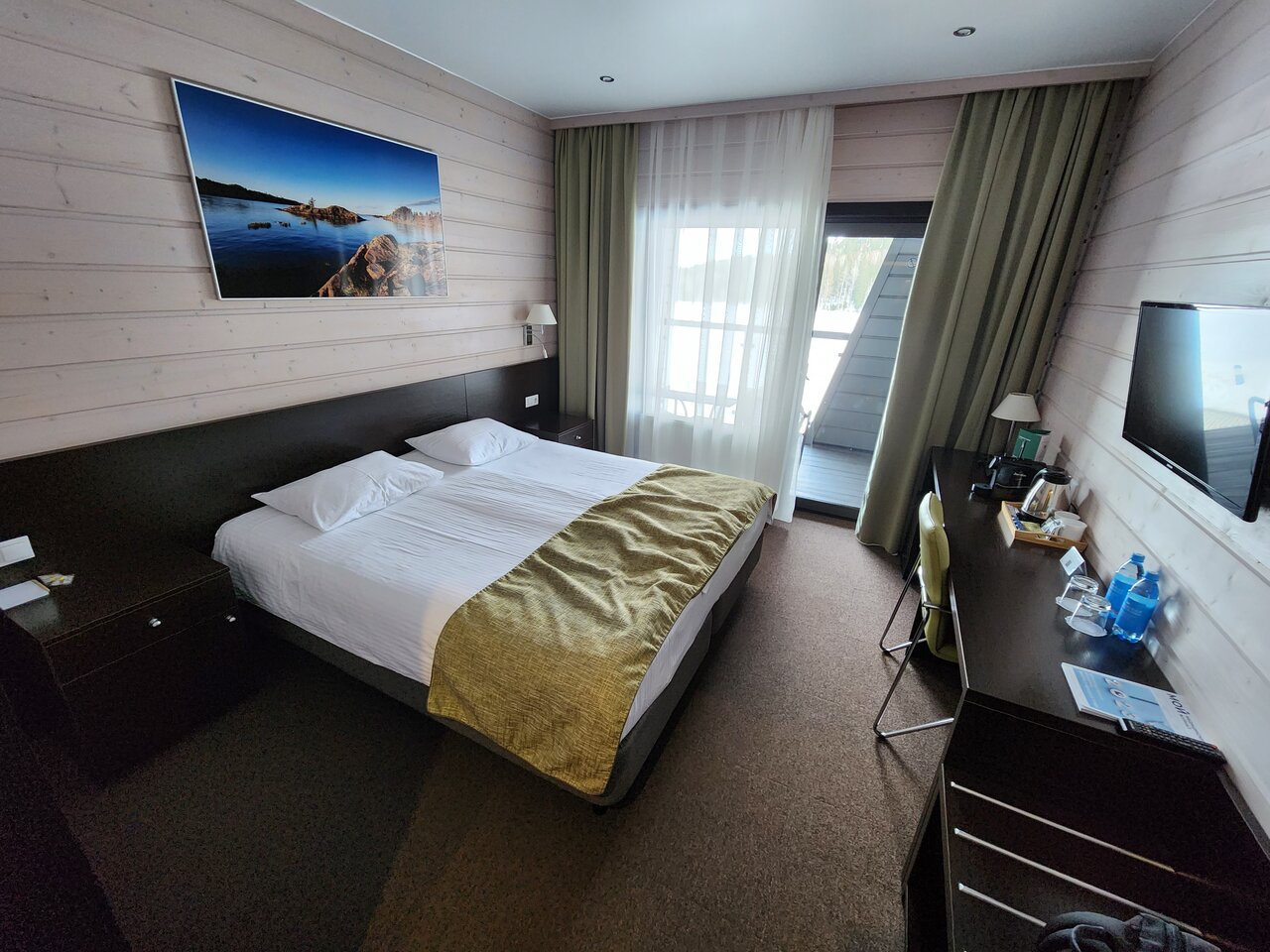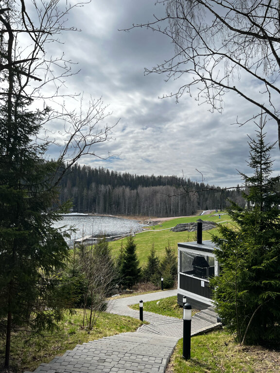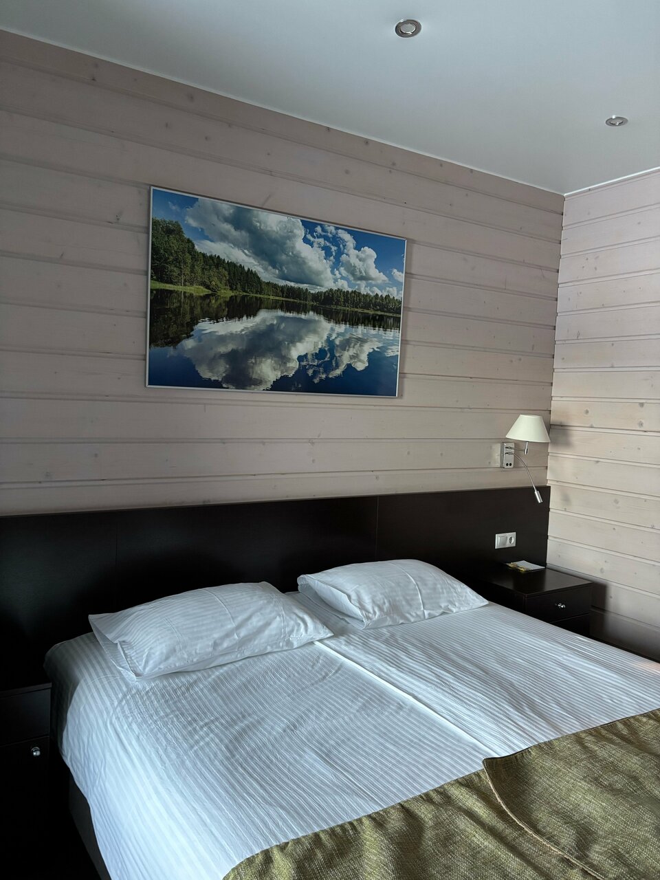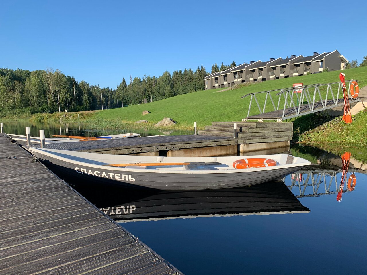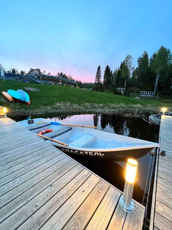 Прекрасное расположение отеля относительно достопримечательностей. Частная охраняемая территория. Современные номера. Из каждого открывается вид на озеро. Можно взять на прокат лодку или sup-board, попариться в баньке. Дорога на завтрак лежит через лесную тропинку и занимает буквально 7 минут. На всей территории очень тихо и спокойно. Идеальное место, чтобы расслабиться. На территории есть только одно кафе, поэтому лучше взять что-нибудь с собой или выбираться в соседние кафе/рестораны, которых не очень много вокруг.