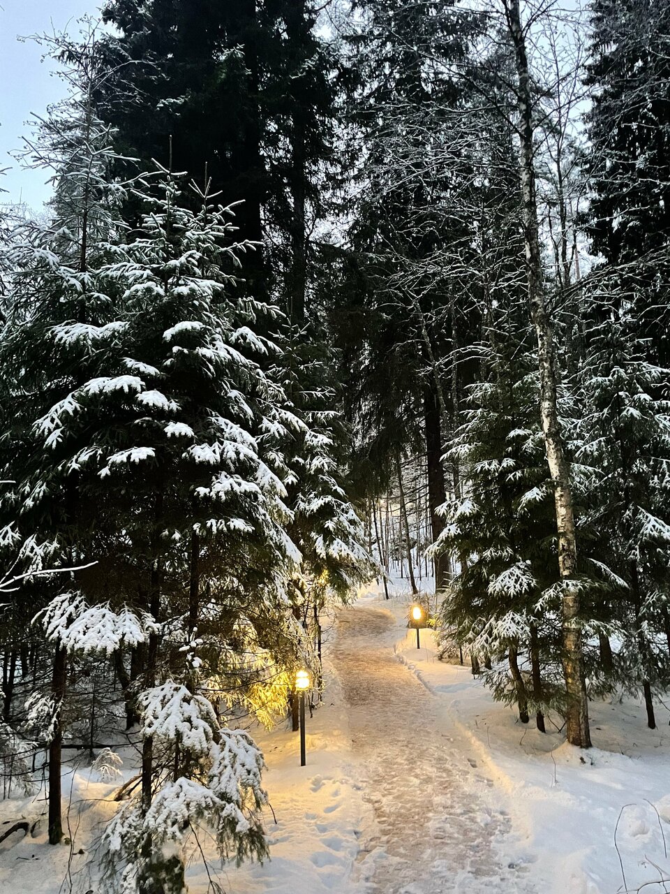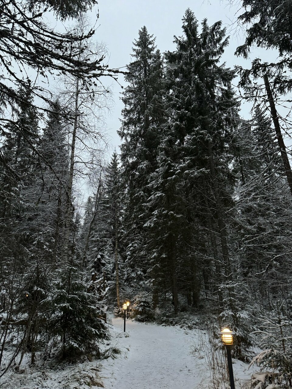 Заехали 30.11.23 отмечать Новый год, в номере ждал приятный сюрприз: шампанское и мандарины. Для нас место просто сказочное, природа, снег, номера маленькие, но очень уютные. По дороге из Москвы и обратно заезжали в разные отели, с номерами большими, но уюта как Точке на карте нам не хватало) Персонал очень доброжелательный, всегда готовы помочь. Новогодняя ночь отличная и развлечения и блюда, Дел Мороз заходил в номер — поздравлял ребенка. Прогулка до кафе через лес совсем не напрягала, а даже наоборот. Завтраки отличные, все что нужно. Бранч 1 января очень порадовал разнообразием. 15 минут от отела — парк Рускеала, водопады. Ездили 2 раза, один раз вечером смотрели красоту с подсветкой и на следующий день в подземную Рускеалу. Отдых удался, всему персоналу большое спасибо, видно, что очень стараются и уровень достойный. Обязательно вернемся!
