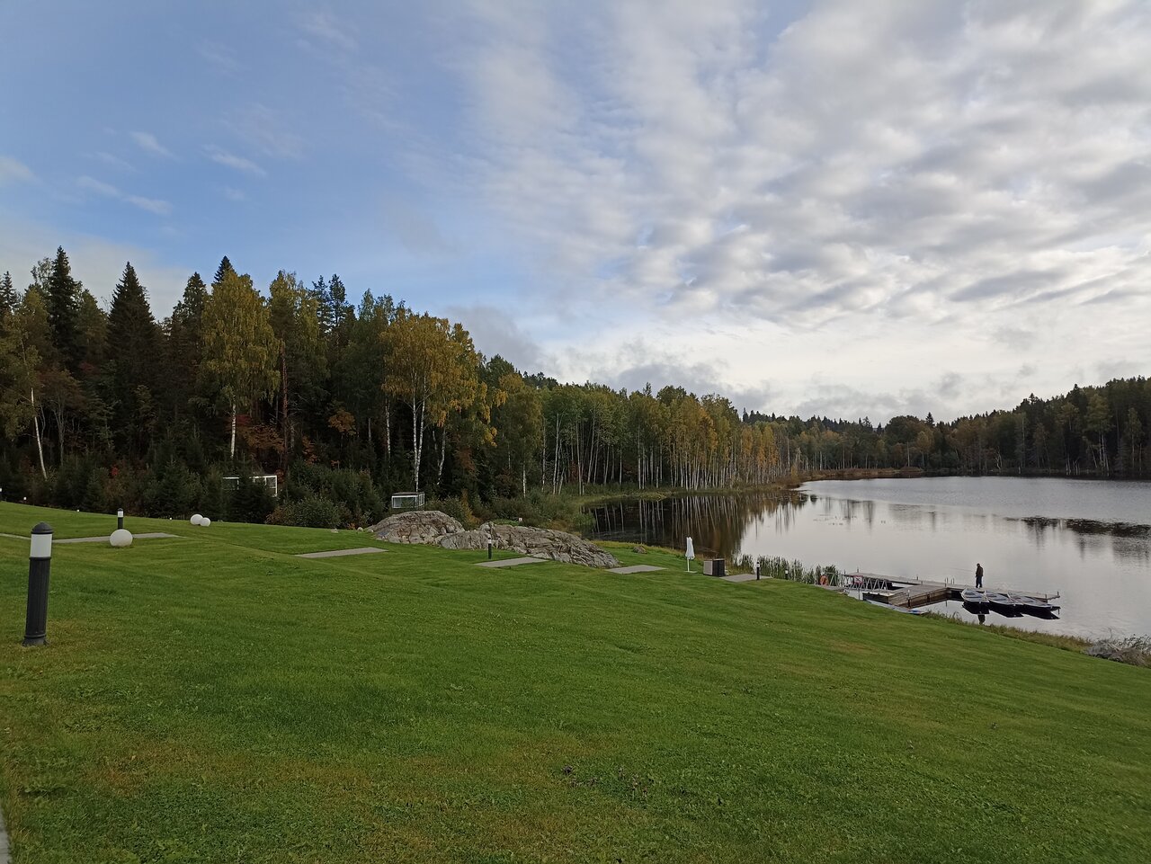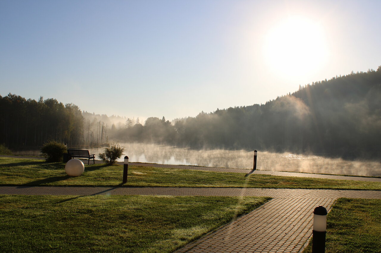 Красивое, уютное место. Замечательное озеро. Комфортные номера с балконами и видом на озеро. Из минусов: вокруг отеля не хватает маршрутов для прогулок, хотя территория и большая, единственный маршрут через лес к столовой, которую тоже можно отнести к минусам, так как вместо того чтобы спрашивать на входе проживаю ли я в отеле и из какого я номера, гости должны обязательно пройти через кассу, отстояв очередь и сказать что ты не с улицы зашел. Поэтому в утренние часы образовывается очередь, которой могло бы и не быть.