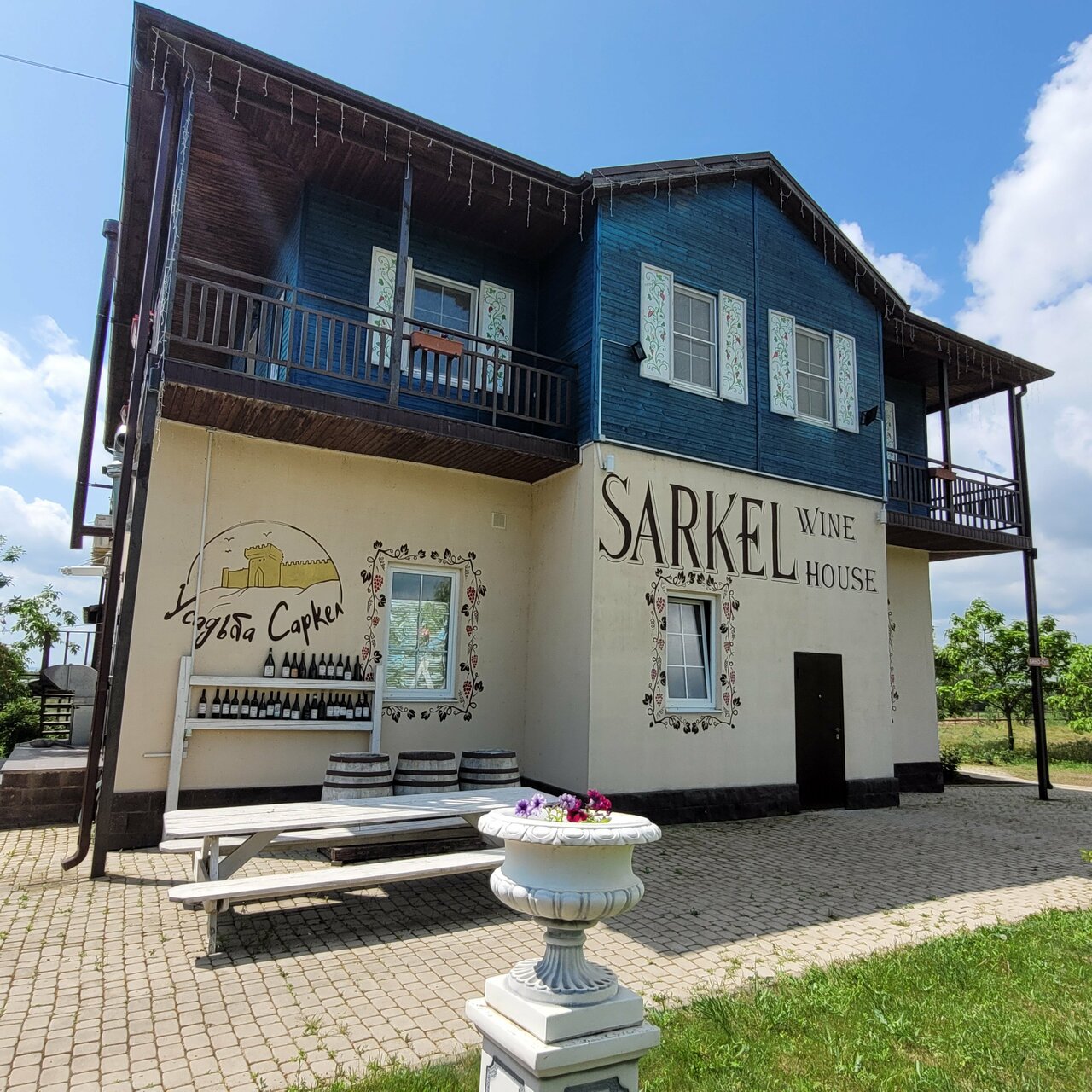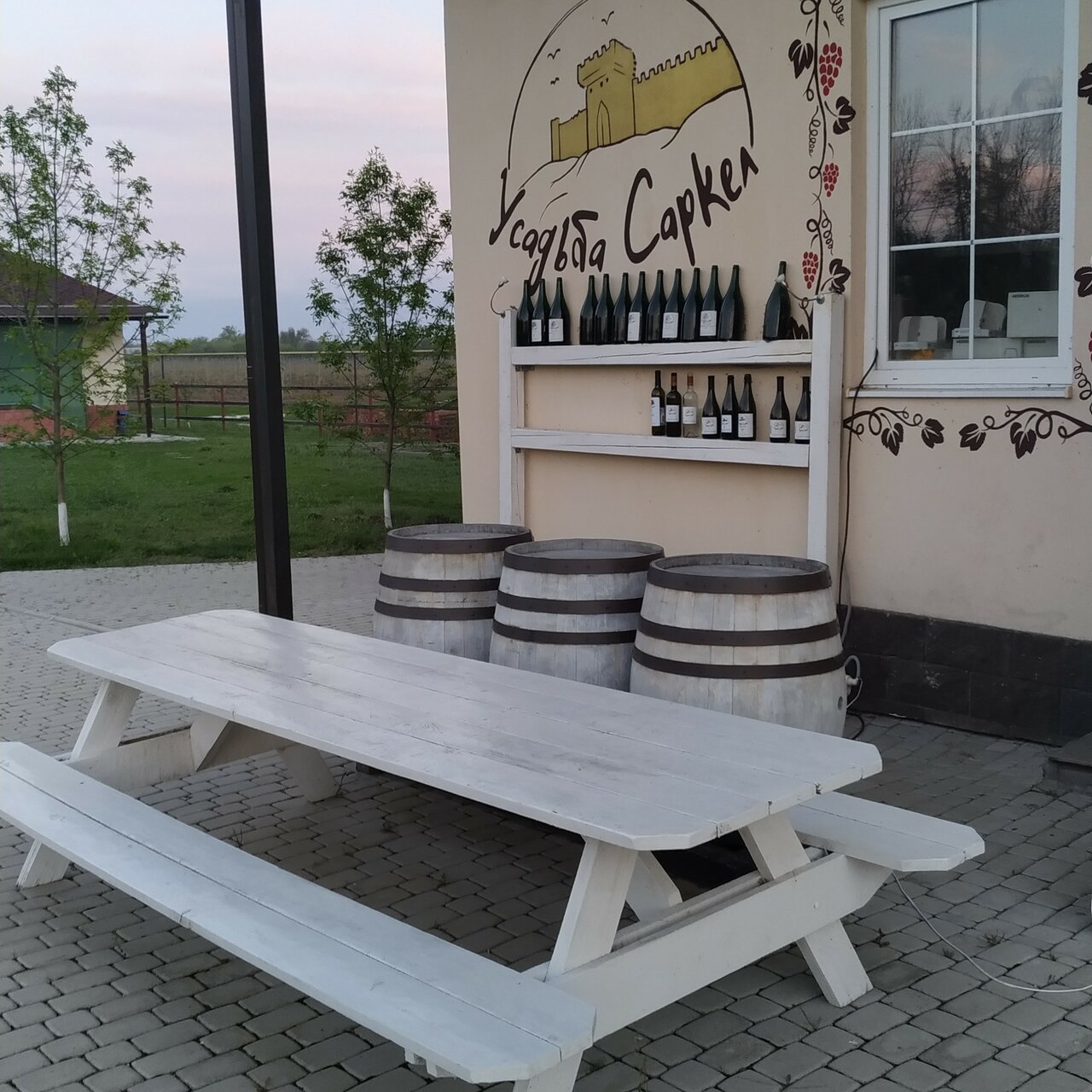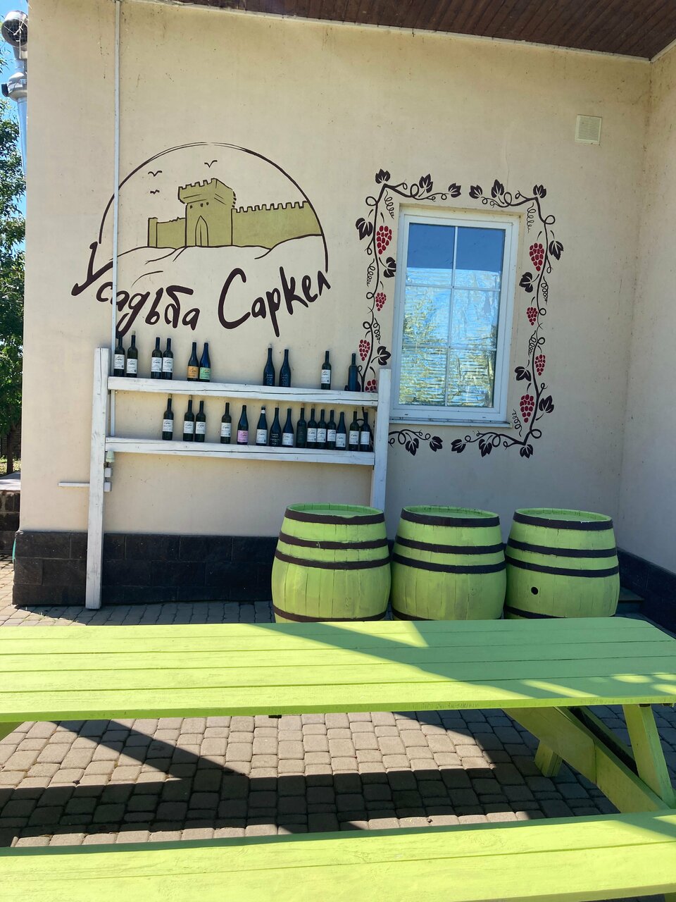 Отличное место отдохнуть,пройтись с бокалом вина, возле виноградников с кучей беседок,на территории усадьбы есть магазин вино и сыры, всё делают сами вино на любой вкус и кошелёк,приветливый персонал