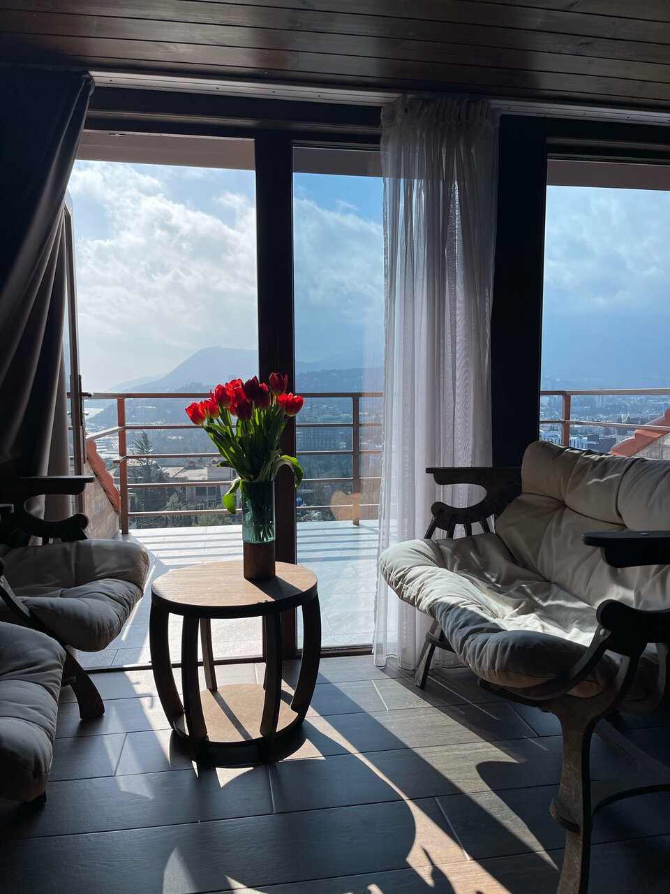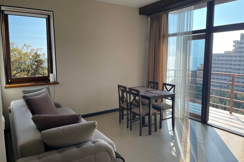 Очень уютные апартаменты с отличным видом и возможностью готовить как дома, для отдыха с семьей очень удобно. Но есть нюанс, пешком в горочку метров 100-150 придется пройти, мы с этим расчетом специально брали, так сказать полезная физ нагрузка))