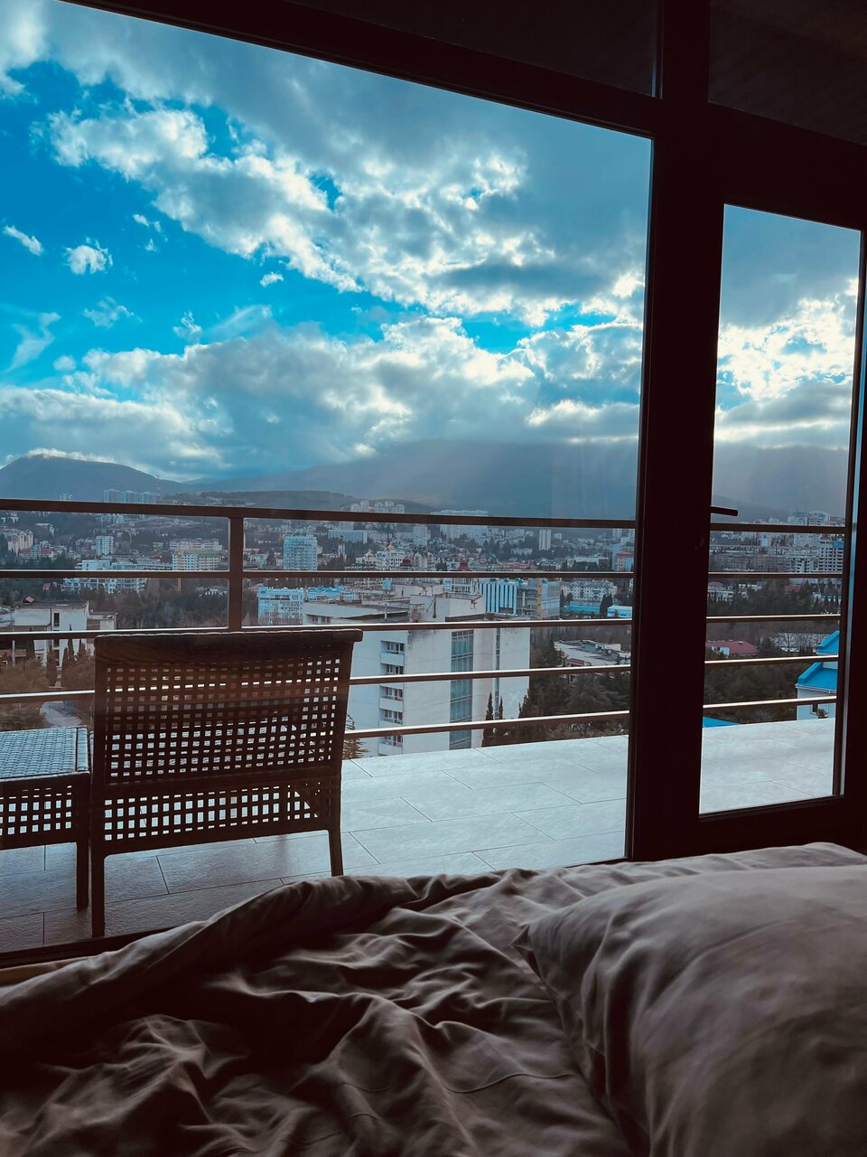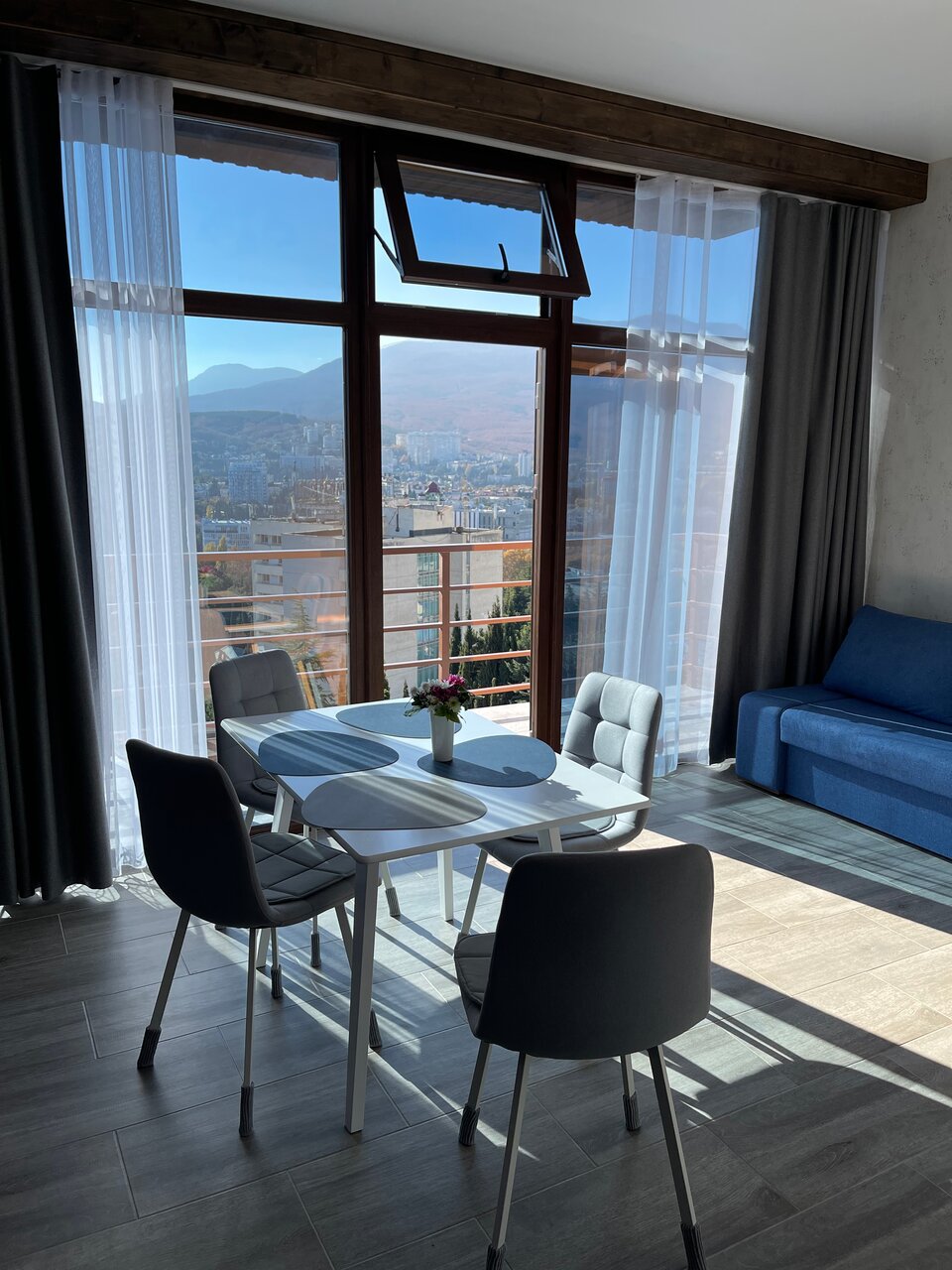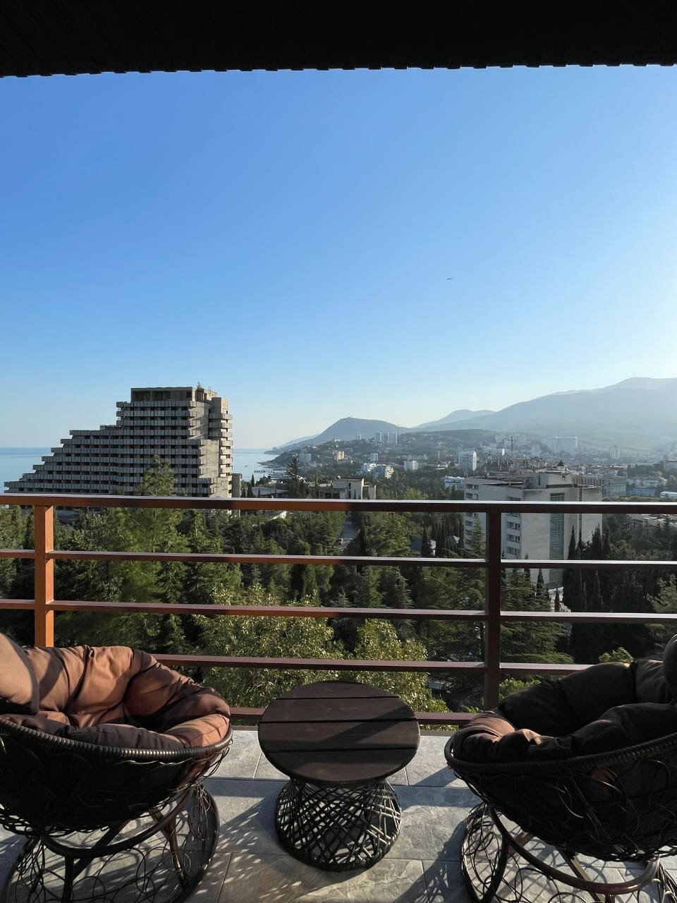 Всё супер! Вид с балкона на море, город и горы! Завораживает. Можно сидеть часами любоваться! Дизайнерский ремонт! Всё новое! Хозяева очень отзывчивые и добрые! Спасибо за отдых в вашей мини берлоге