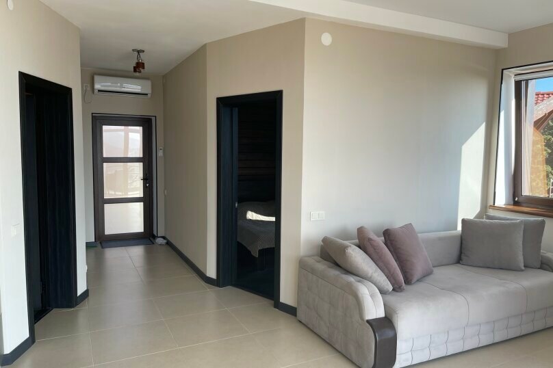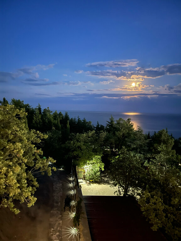 Отдыхали в августе. Хозяева доброжелательные и отзывчивые, комнаты шикарные, ремонт свежий, техика вся отличная, вид с балкона потрясающий. Идеальный вариант для активных молодых людей без детей, так как подъем в гору без машины осилить трудно. Всем остальным придётся кататься на авто. К слову, пляжи в пешей доступности плохие, каменистые и полные людей — с подачи хозяев мы ездили купаться в Профессорский уголок, там очень мелкая галька и не так много отдыхающих.