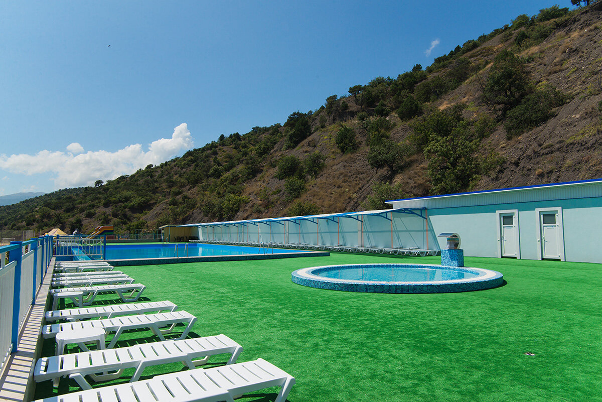- Разнообразие детей для общения.; Вкусная еда в кафе и столовой.; Отличное расположение на берегу моря.; Чистота, вежливый персонал, хорошее море.; Продуктовые магазины рядом.