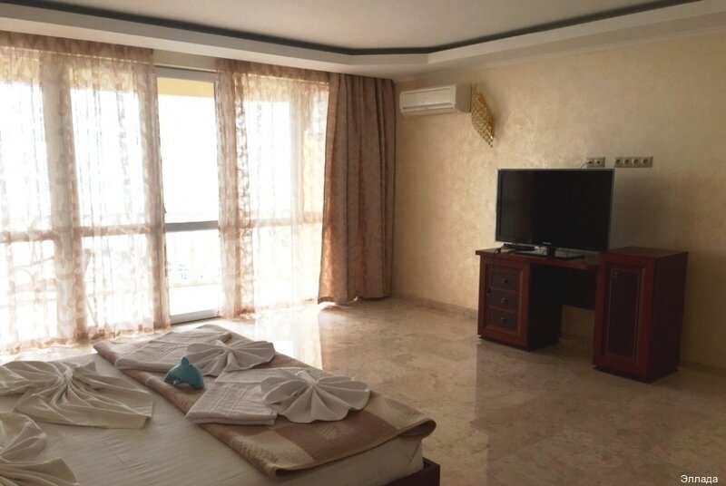 Прекрасные апартаменты, есть кухня в номерах, особенно Фисташковый тут тихо и спокойно. Первая линия. Прям с балкона можно смотреть на то как плескаются дельфины. Магазины, бары, столовая, бассейн, прямо на проминанте отеля. Красиво, тихо, шезлонги, пирсы, рыбалка прямо прет. С детьми супер, так как территория закрытая особо не надо париться по поводу машин и незнакомых.