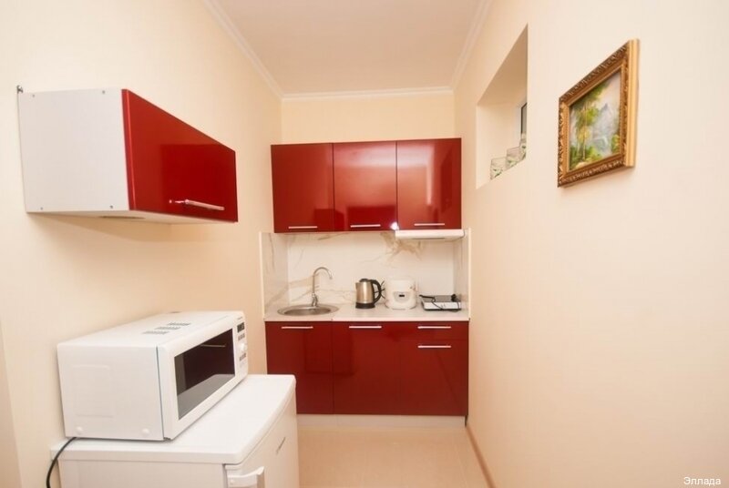 - Наличие кухни в номерах, закрытая территория.