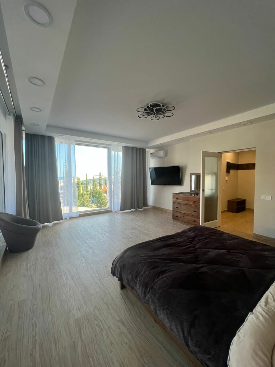 Апартаменты просто шикарные! Жили на втором этаже, видно море! Огромнейший балкон, огромная гостиная, 4 спальни, во всех телевизоры, кондиционеры и выход на балкон На пляже свои лежаки Хозяин Николай великолепный человек! На связи 24/7! Делал всё, что бы мы чувствовали себя прекрасно! Огромное спасибо!!! В апартаментах техника, мебель, всё новое и классное! Есть дворик, мангал, детская площадка! Короче, просто супер!