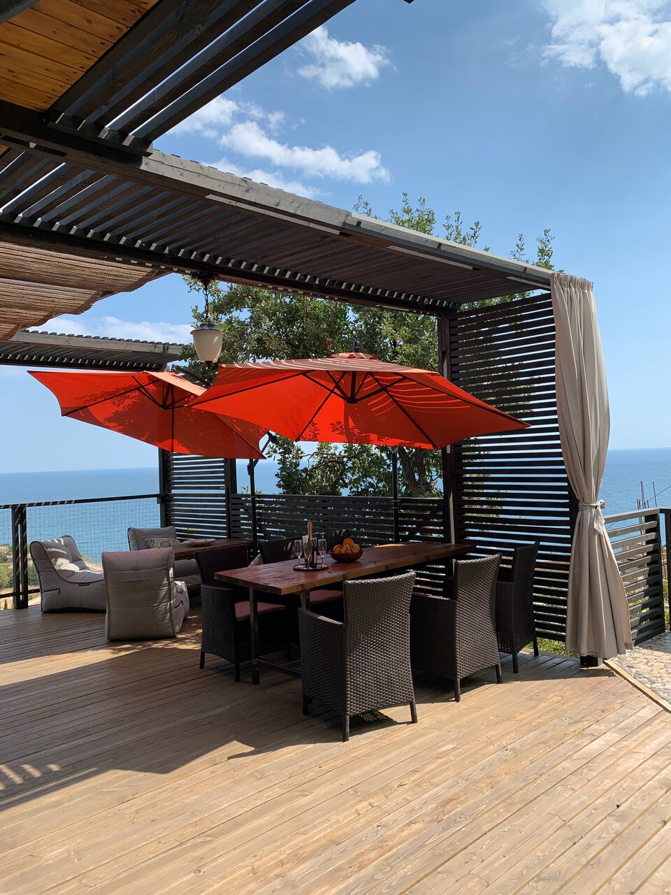 Нашли данное место спонтанно. Отдыхали с 23-30 августа 2024. 5 человек. Домик комфортный, все сделано с душой как для себя. Работает вся инженерка ( кондеи, музыка, посудомойка). Виды с терасс шикарные. На пляже есть свои места. Спускаться пешком до пляжа 7 минут. Подниматься сложнее, но терпимо. Очень довольны все! Вернемся еще! Важная деталь- хозяева живут там же. Любой вопрос сращу решается!