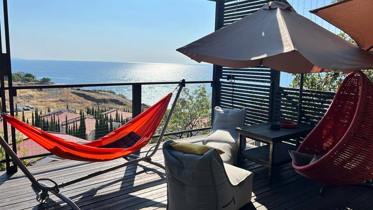 Отдых в домиках в Алуште оставил у нас самые приятные впечатления, в которые хочется возвращаться снова и снова. Что мы и делали:))) уже несколько раз отдыхали. Красивый панорамный вид и звук цикад создавали уникальную атмосферу уединения и гармонии с природой. Очень удобные кровати, посудомоечная машина, фильтр для воды, холодильник, кофемашина и мангальная зона, в которой даже угли присутствуют, делали пребывание комфортным. Приятным сюрпризом стало приветственное шампанское, а наличие домашнего кинотеатра добавило уют и разнообразие в наши вечера. Зона отдыха с гамаками, креслами, книгами и столиком, а также шикарным видом на лес и море стала любимым местом для расслабления. Особая благодарность хозяйке Наталье: она была гостеприимной, приветливой и быстро реагировала на все наши вопросы. Отдых у Натальи превзошёл все ожидания. Рекомендуем!
