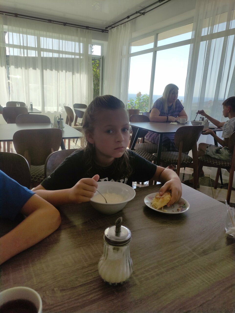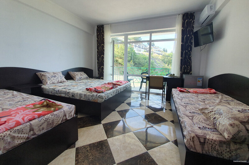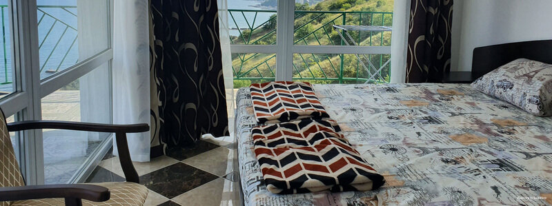 Прекрасное место с очень выигрышными видами из каждого номера! Море, небо, солнце, горы. Номера стандартные, кровати с хорошими матрасами, холодильник, тв, все есть. Кормят вкусно, по-домашнему, своя выпечка отличного качества. Бассейн во дворе и для детей развлечение и для взрослых фотозона :). К морю близко, хотя и не просто, то с горы, то в гору. Зато прекрасный фитнес 🙂 Вобшем, нам понравилось.