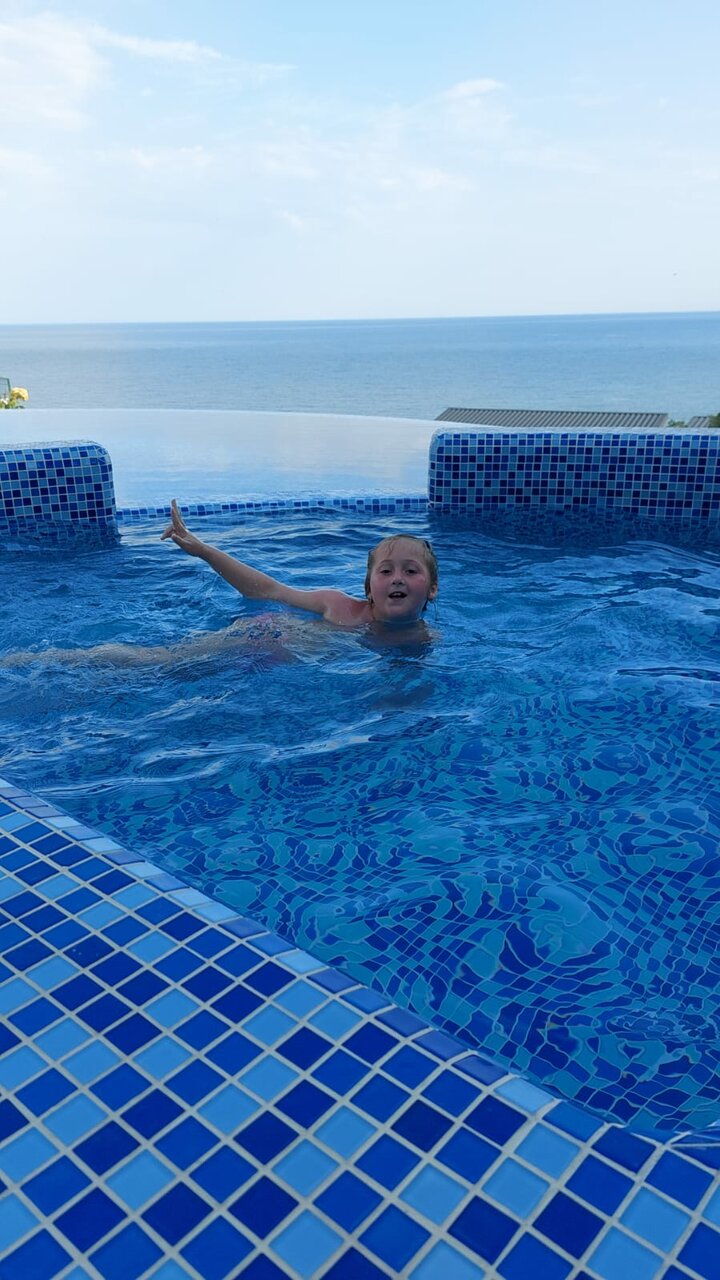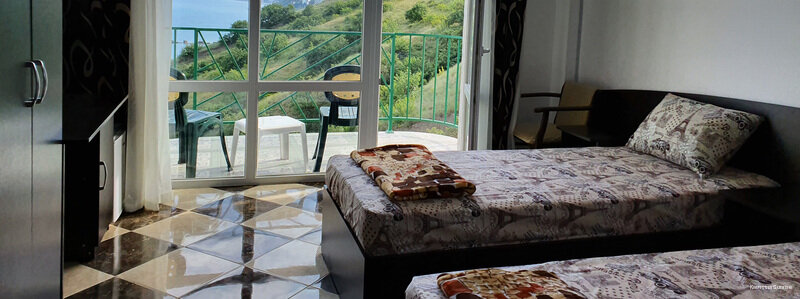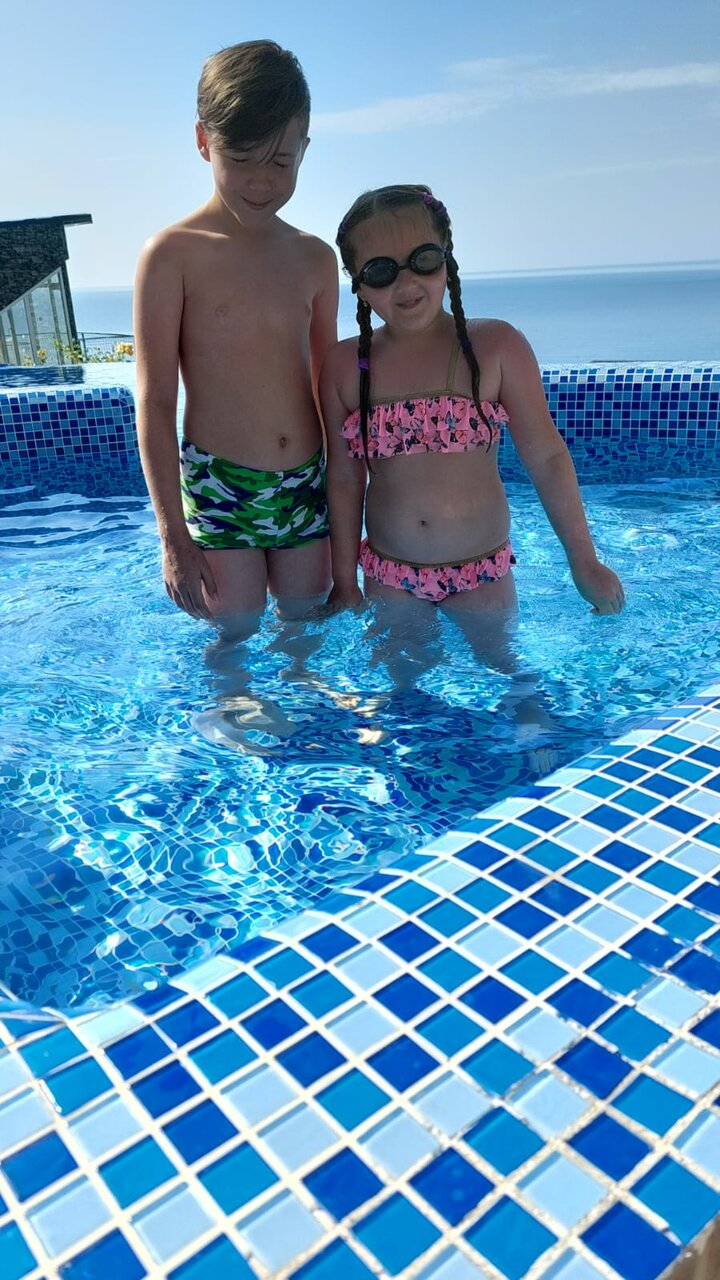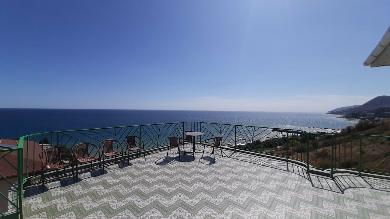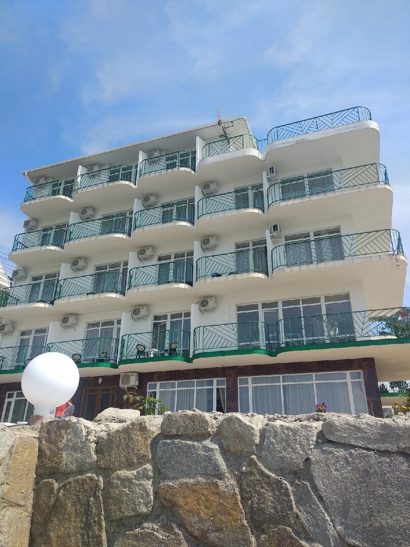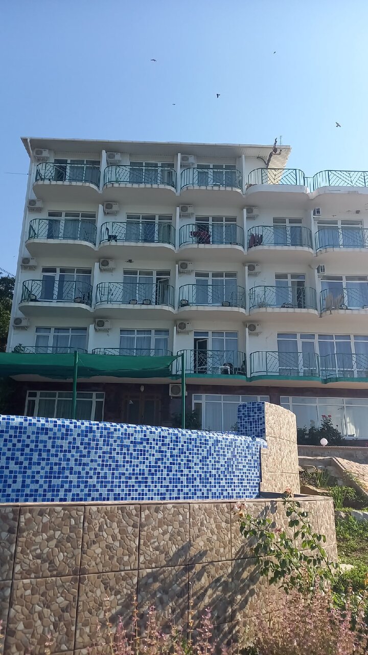 Мы были на отдыхе семьей с двумя детьми на прошлой неделе! Очень понравилось это место: номер с красивым видом на море , удобные кровати, есть кондиционеры, холодильник в номере. Два раза в день питпние входит в стоимость — завтрак и обед. Пища вкусная , есть выбор из блюд, каждый день меню разное! А уж какой бассейн видовой — слов нет! Детский неглубокий отсек, взрослый с комфортной глубиной , а вид из него- словно сливается с линией моря и горизонта! Не хотелось из него вообще никуда уходить … Море рядом, есть выбор из нескольких пляжей. На верхнем этаже есть площадка ,которая открывает панораму моря и Алушты и гор, там не только днем дух захватывает от красоты! Ночью мы особенно душевно там проводили время с детьми: на удобных лежаках, завернувшись в пледики , смотрели на южнобережное небо и звезды, под доносившийся с моря шум прибоя искали знакомые созвездия…. Это запомнится на всю жизнь!.. спасибо всему персоналу за прекрасный отдых!