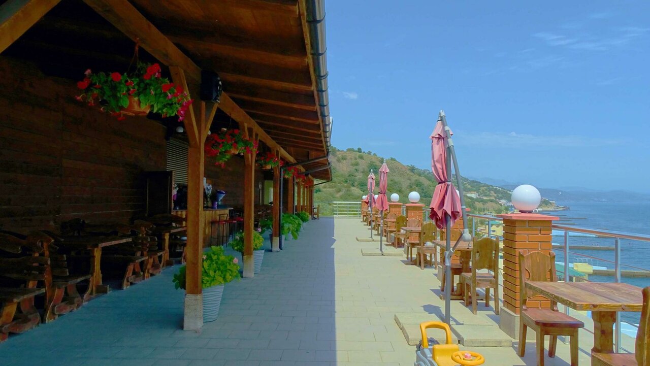 Для тех, кому важно жить ‘в метре’ у моря. В кафе готовят очень вкусно и вид потрясающий.