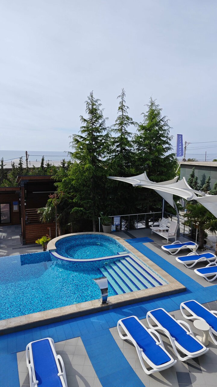 Очень классное место. Теплее бассейна нет в Крыму)) ещё только в 1 месте. Номера с видом просто супер. Чисто и очень уютно