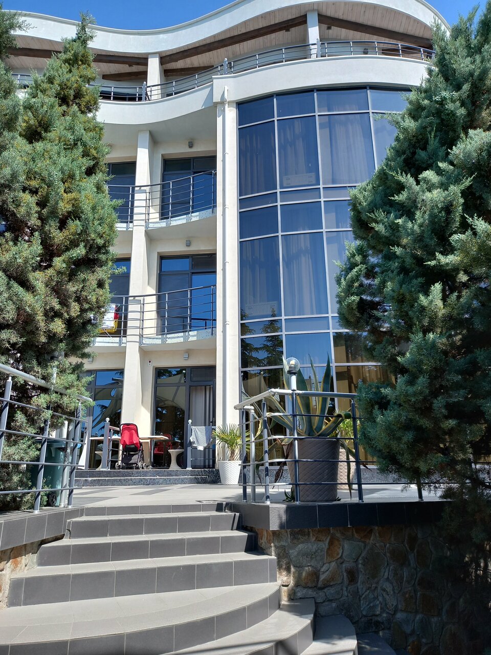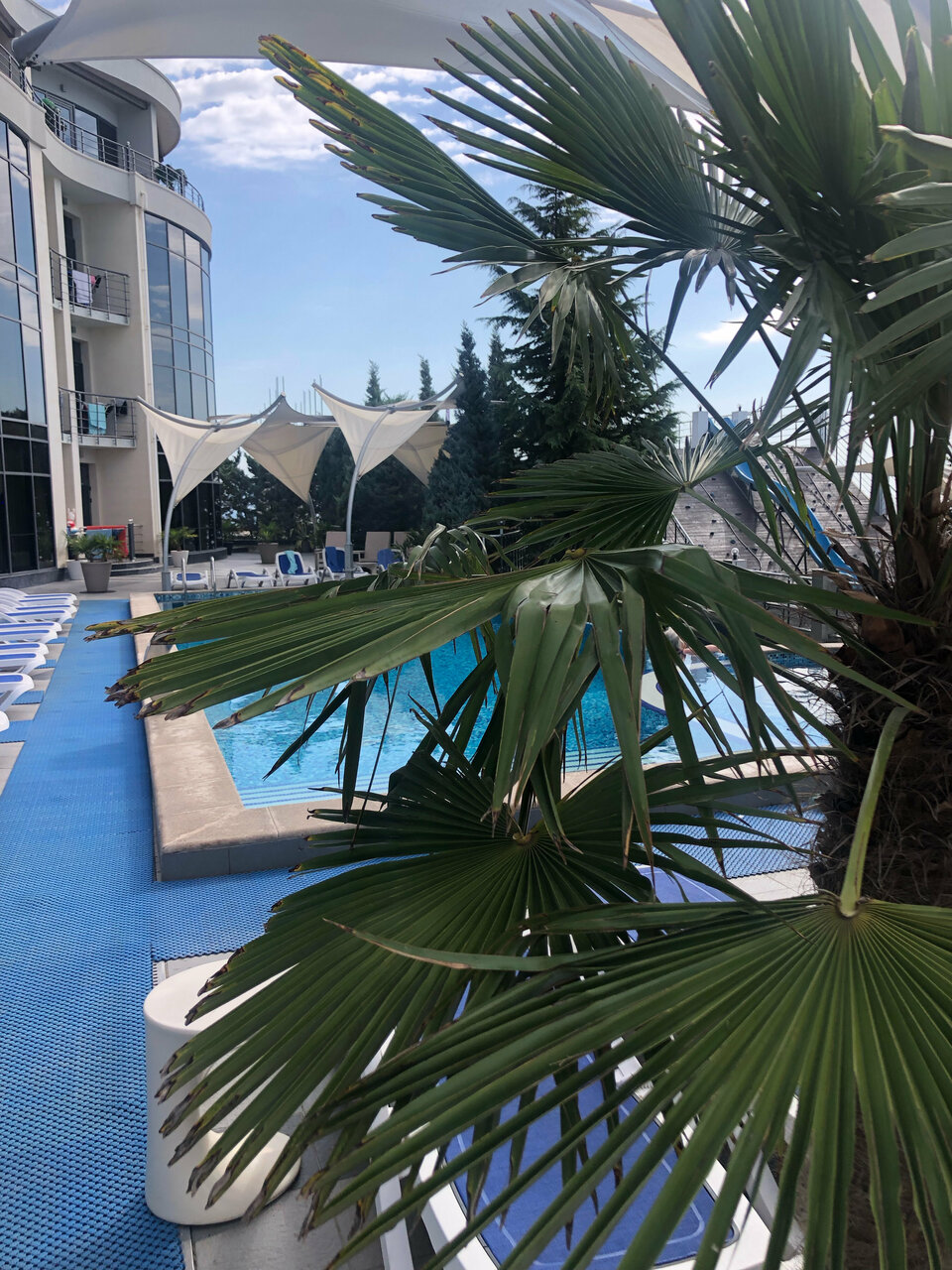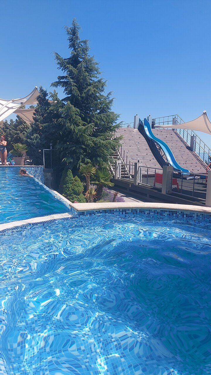 Номера отличные, давно таких не видела на нашем побережье. Бассейн с подогревом выручил, когда прохладно было и медузы в море. Пляж конечно так себе. Отель делит пляж с санаторием Славутич. Первый автобус с этого санатория приезжает в 9 утра и потом конечно свободный лежак найти сложно. Завтраки на шведской линии очень однообразные. Каша одного вида (овсянка с комочками или манка). Яичница, один раз за 10 дней были варёные яйца, омлета не было. Блины были только фаршированные мясом, дети такое не едят, в идеале подали бы просто блинчики или оладушки, но их тоже не было. Территория хоть и маленькая, но хорошая, чистенько, ухожено, претензий нет. Анимация слабовата, аниматор Дима молодец, старается и дети его очень любят, но одному тяжело тянуть весь отель. До центра, где аттракционы, кафе и т.д. надо будет ехать. Персонал на 5, без проблем решает все вопросы. В ресторане отличное обслуживание. Для тех кто ищет спокойный-релакс отдых, советую. С детьми, на мой взгляд, будет скучновато