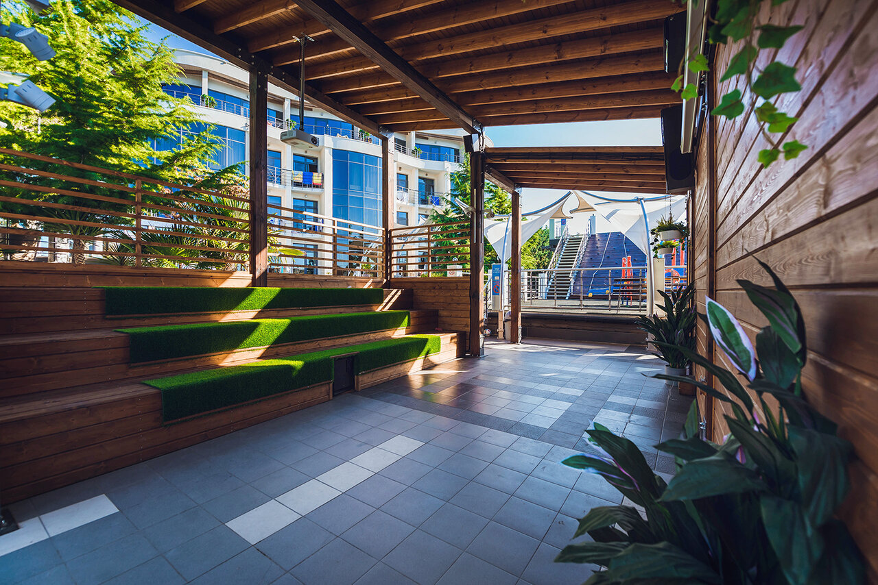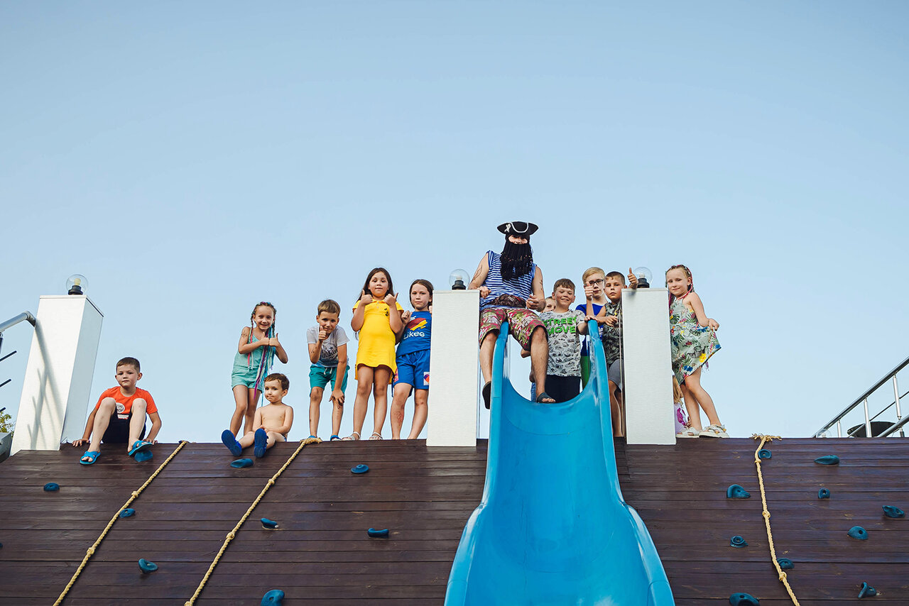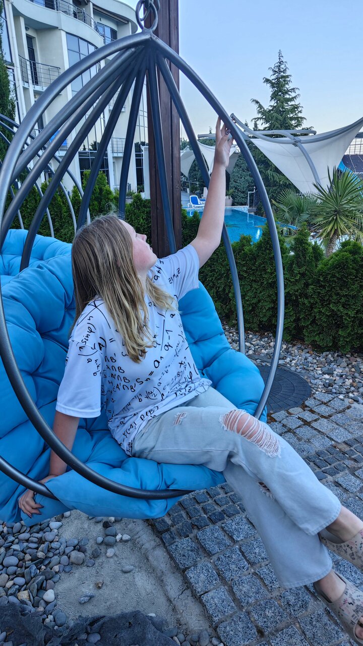 Номера отличные, давно таких не видела на нашем побережье. Бассейн с подогревом выручил, когда прохладно было и медузы в море. Пляж конечно так себе. Отель делит пляж с санаторием Славутич. Первый автобус с этого санатория приезжает в 9 утра и потом конечно свободный лежак найти сложно. Завтраки на шведской линии очень однообразные. Каша одного вида (овсянка с комочками или манка). Яичница, один раз за 10 дней были варёные яйца, омлета не было. Блины были только фаршированные мясом, дети такое не едят, в идеале подали бы просто блинчики или оладушки, но их тоже не было. Территория хоть и маленькая, но хорошая, чистенько, ухожено, претензий нет. Анимация слабовата, аниматор Дима молодец, старается и дети его очень любят, но одному тяжело тянуть весь отель. До центра, где аттракционы, кафе и т.д. надо будет ехать. Персонал на 5, без проблем решает все вопросы. В ресторане отличное обслуживание. Для тех кто ищет спокойный-релакс отдых, советую. С детьми, на мой взгляд, будет скучновато