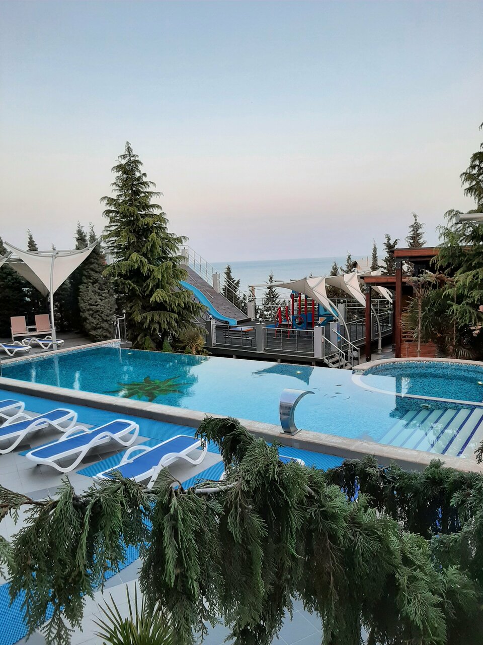 Осталась очень довольно отдыхом. Отзывчивый персонал, хорошие приятные ребята) Комфортные и чистые номера. Небольшая территория где есть всё для незабываемого отдыха. Бассейн с подогревом, шезлонги, хамам, джакузи, смотровая площадка, летний кинотеатр, ресторан.