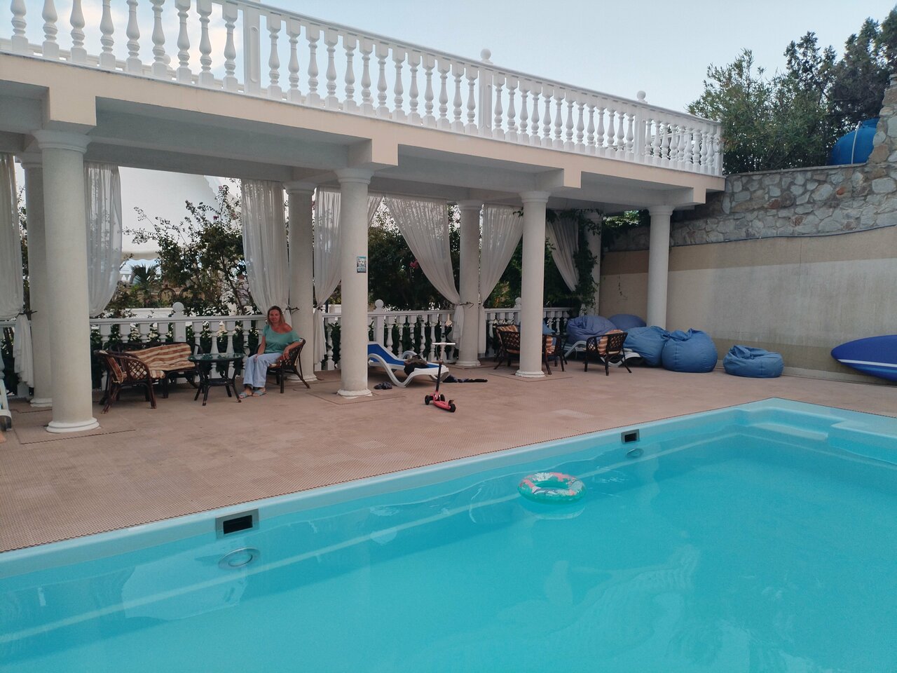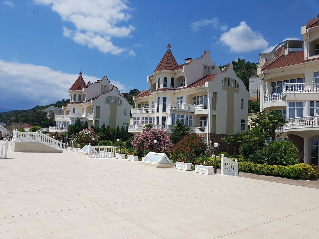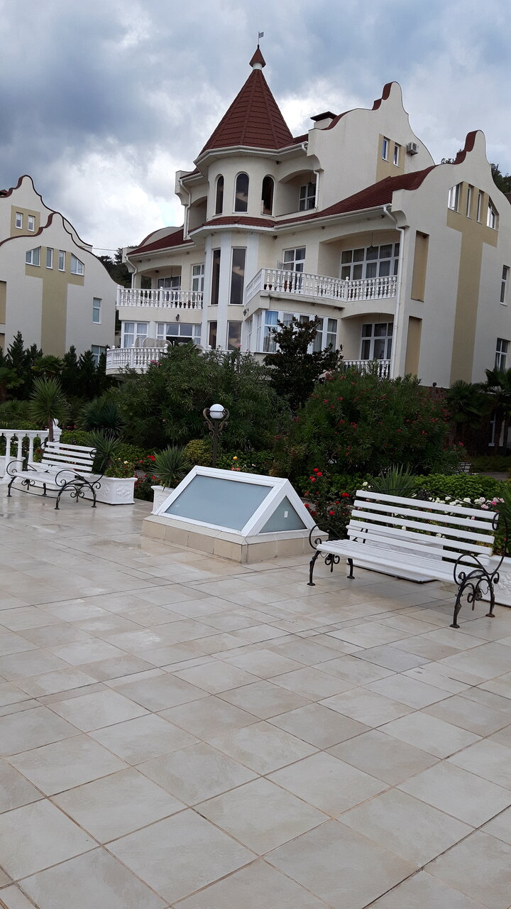 Супер! Номера классные. Очень культурно. Вечером живая музыка. Отпадно. Минусы тоже есть. Очень крутой спуск и подъем для авто. Горит сцепление и тормоза.