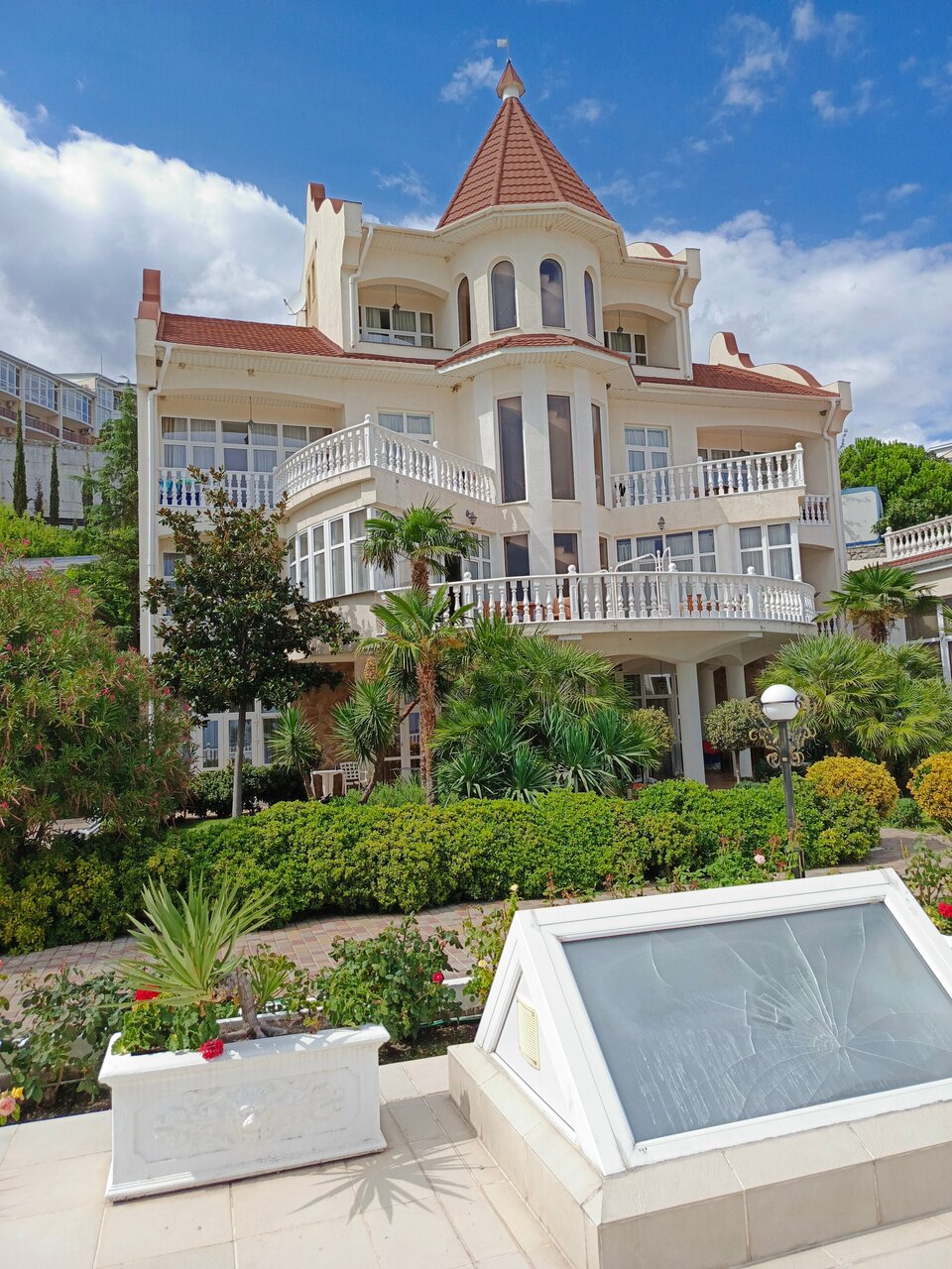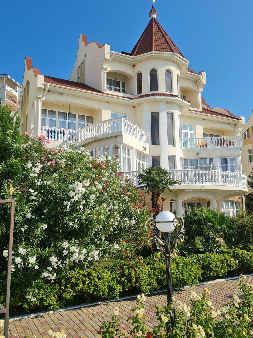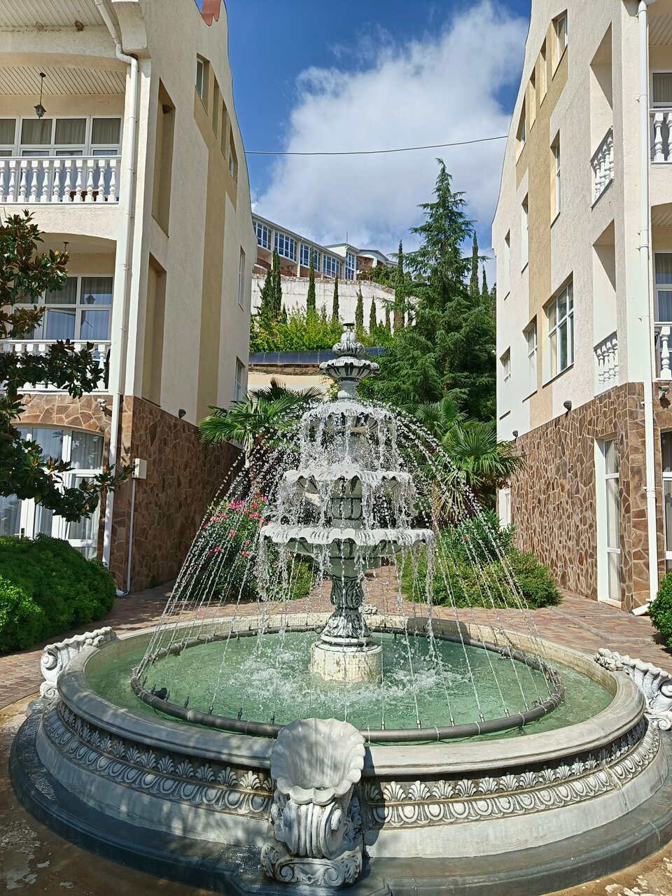 Супер! Номера классные. Очень культурно. Вечером живая музыка. Отпадно. Минусы тоже есть. Очень крутой спуск и подъем для авто. Горит сцепление и тормоза.