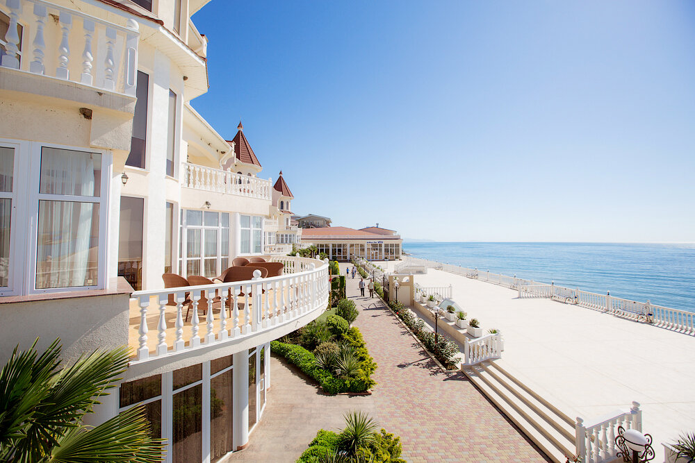 Рядом с морем (68 м), есть собственный галечный пляж с шезлонгами и зонтиками. Дополнительные услуги: платный трансфер, прачечная, врач, салон красоты, детские кроватки и меню.