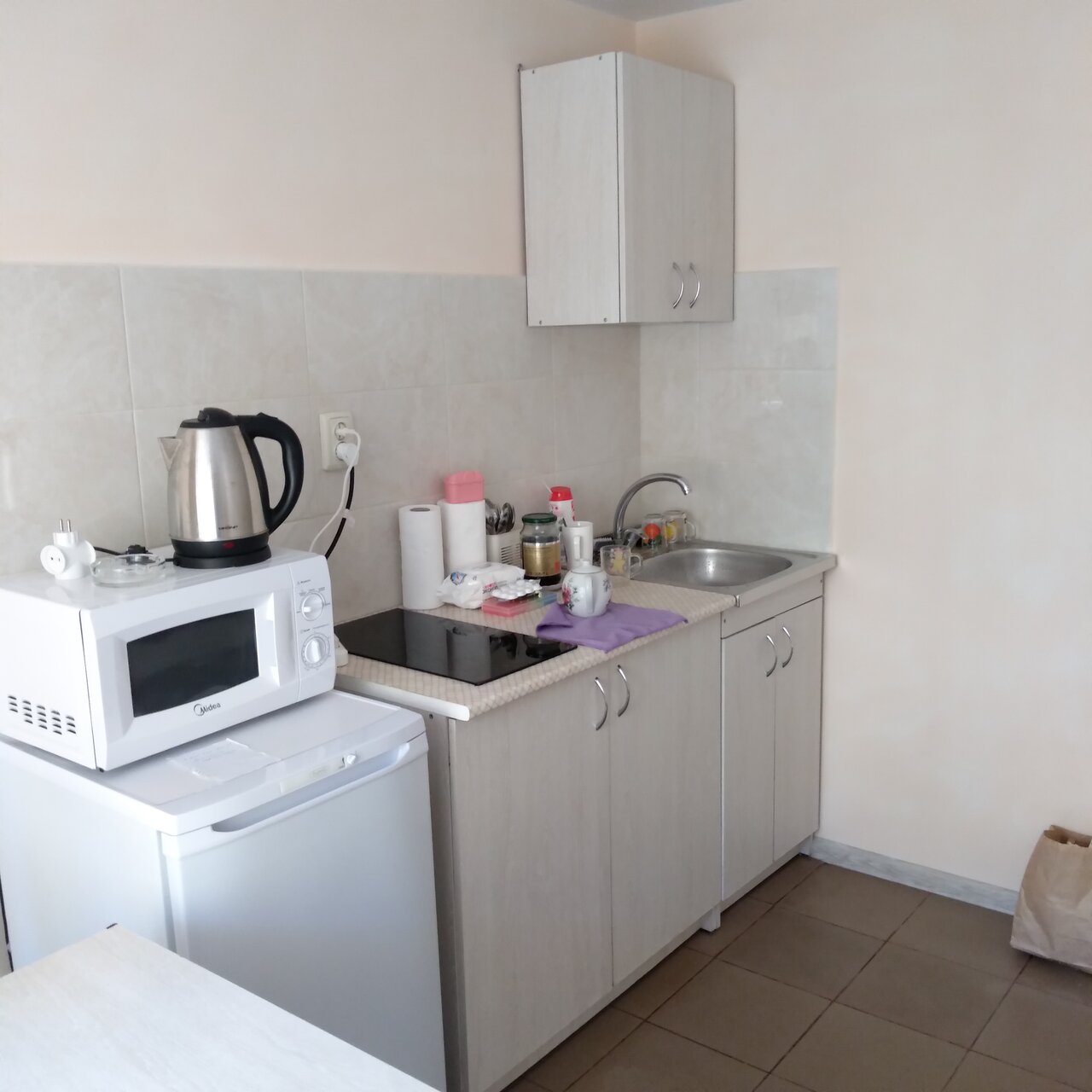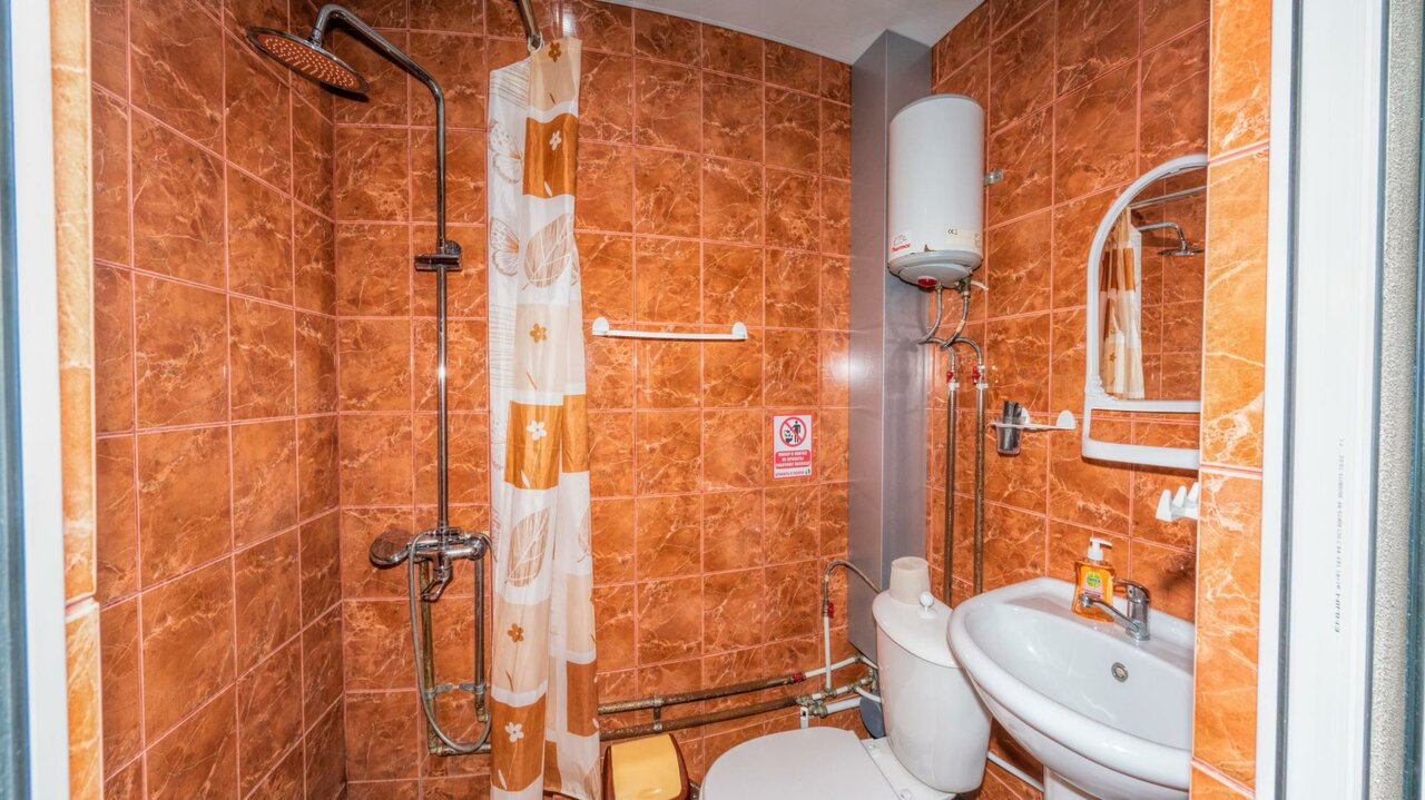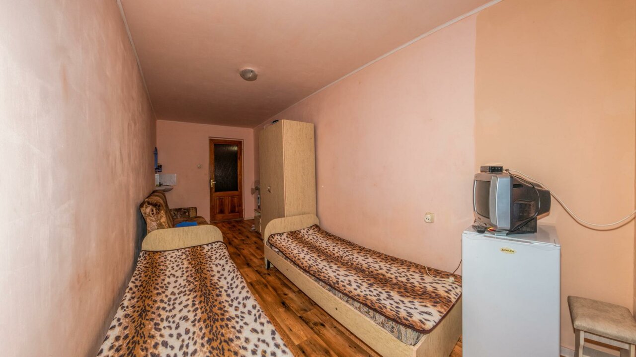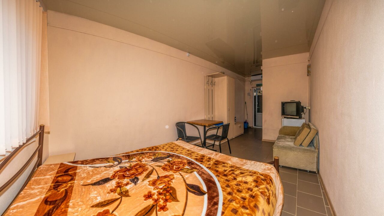 В стоимость входит: душ, туалет, одна небольшая кровать, телевизор, WIFI, холодильник, микроволновка, чайник