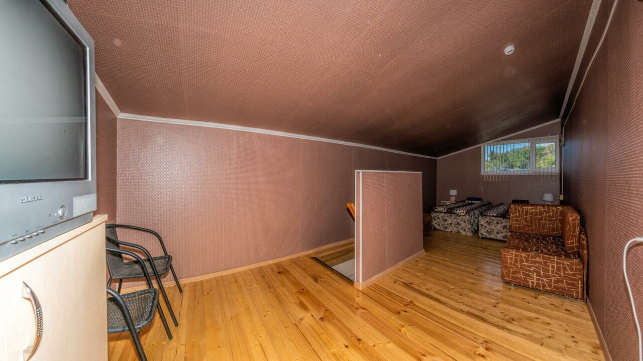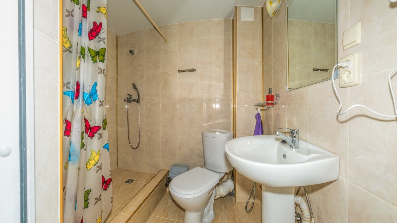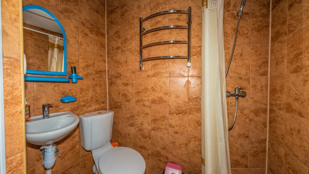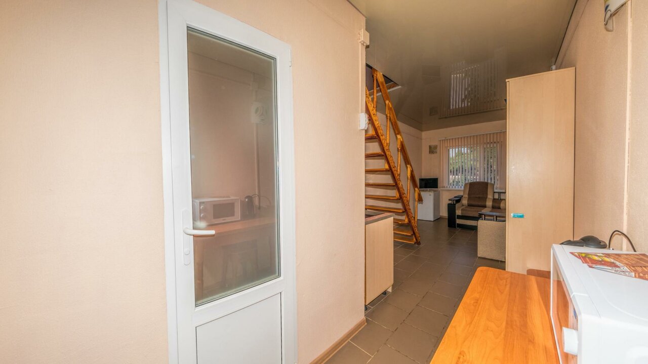 В стоимость входит: душ, туалет, одна небольшая кровать, телевизор, WIFI, холодильник, микроволновка, чайник
