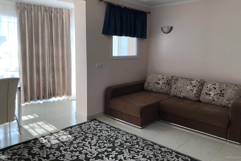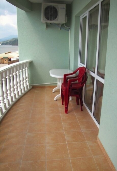 Новый номер с кухней на 4 человек. Двуспальная кровать и диван. Первая линия, вид на море