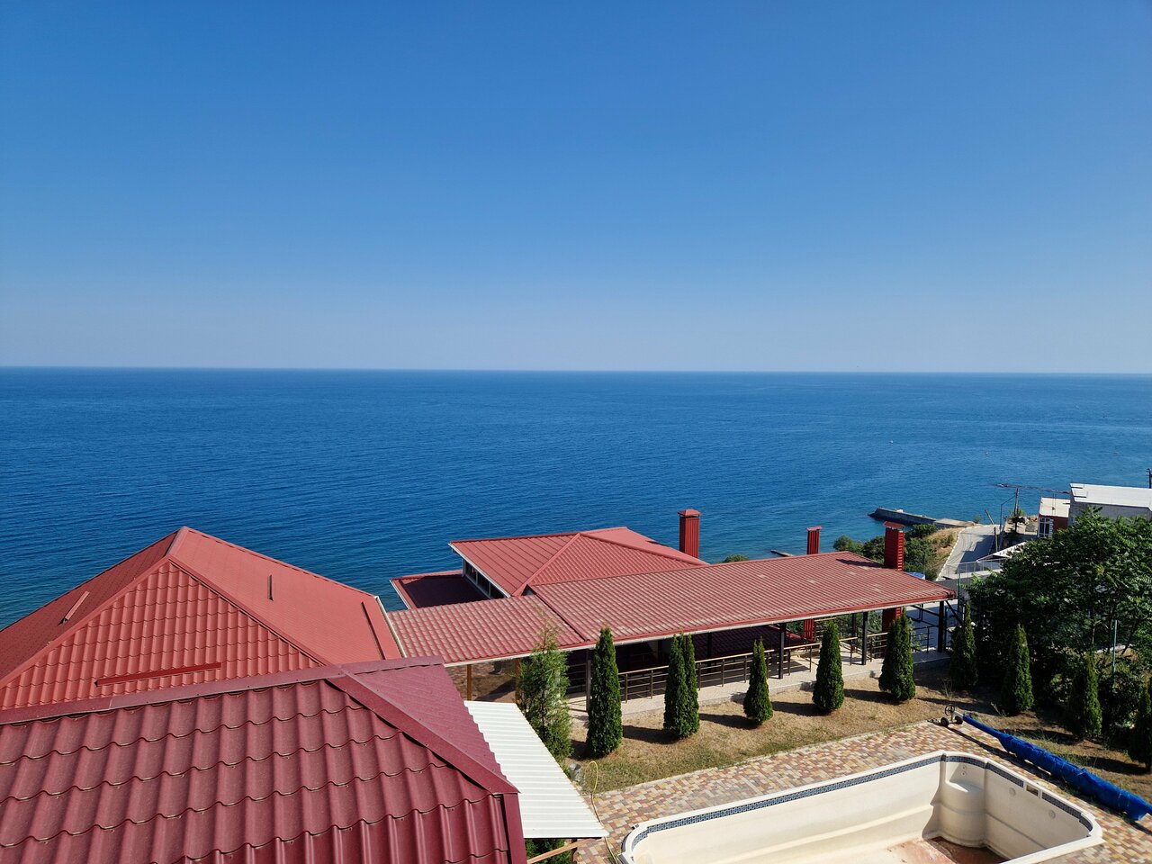 - Своя кухня в номере.; Удобство.; Хороший вид на море и берег.; Наличие кондиционера и телевизора.; До моря пешком 5 минут.