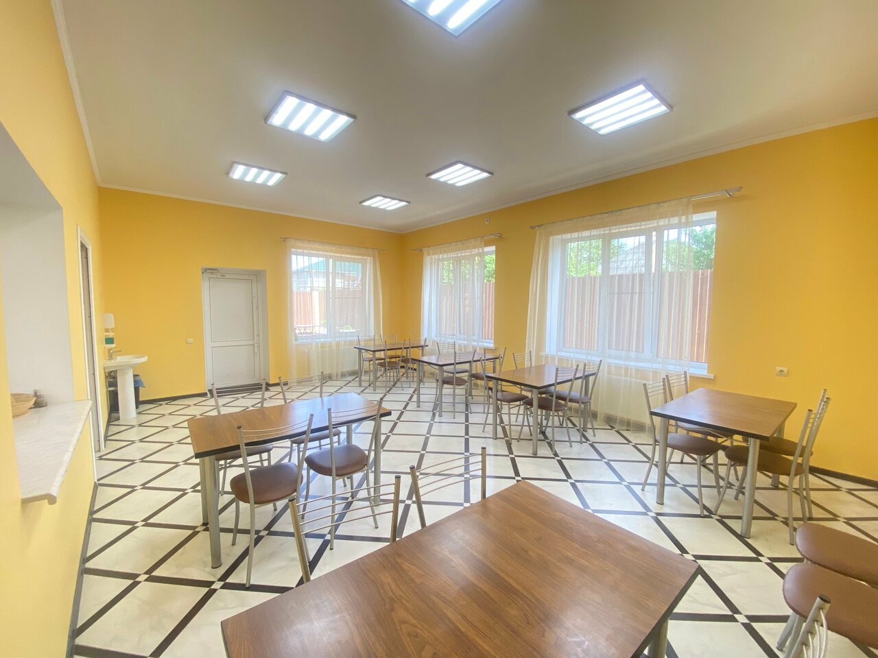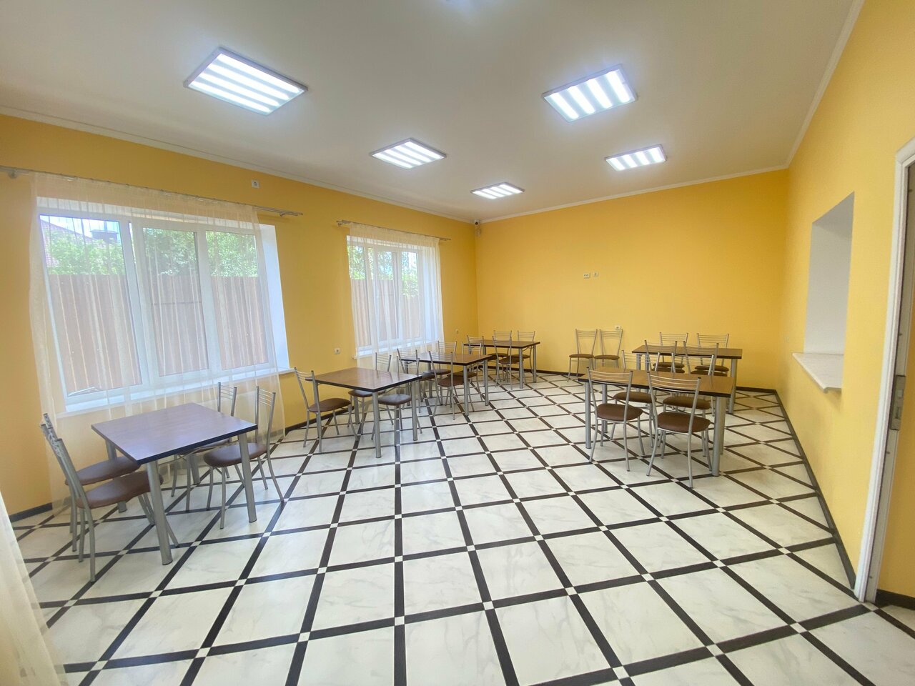 Номера классные телек,сплит,балкон,душ,туалет, полотенца,холодильник,стол,стулья , шифонер. Внизу монгальная зона , бак для мусора большая столовая летом можно посидеть на улице ели не комфортно то внутри ,большая кухня с посудой где можно самостоятельно приготовить еду . В шаговой доступности есть столовая , магнит, пиво ,мясо.