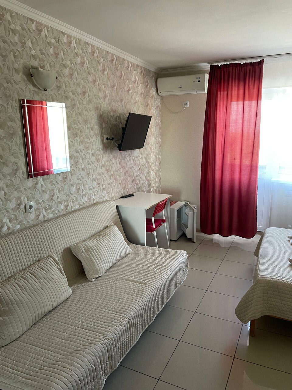 номер с балконом с видом на море со всеми удобствами .В номере 2-х спальная кровать и диван .
