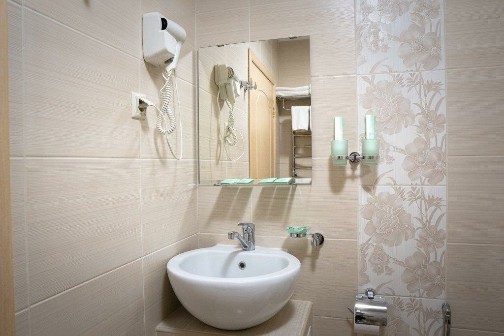Всё там нормально,только нет холодильника,ну уж очень не хватает его,наборы для душевой все в полном составе-это всегда круто,когда с собой ничего нет,ну и не плохо было б кондей приобрести,т к свежий воздух был только из окна,но окна выходили на улицу(на дорогу)-слишком шумно и пыльно!Персонал нормальный,и ответственный,спасибо!