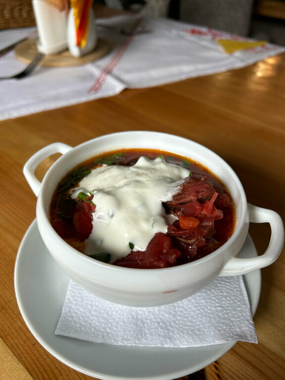 Все понравилось!!!Карельская уха со сливками, очень вкусная . Мясо с картошечкой вкусно!!! Горшочек с картошкой, свининой, грибами- супер! Огурчики хрустящие! Все вкусно, по домашнему. Самогоночка мягонькая. Морс вкусный, не переслащённый. Пельмени из лося вкусные. Атмосфера уютная, теплая. Девчата молодцы!!!! Если будем в этих краях, обязательно посетим!!!! Рекомендуем!!!