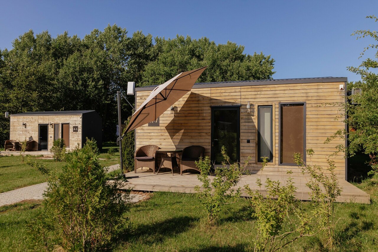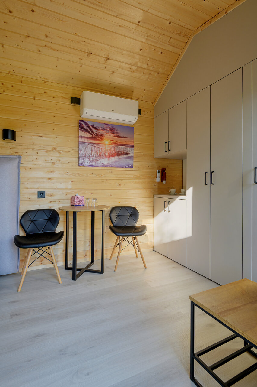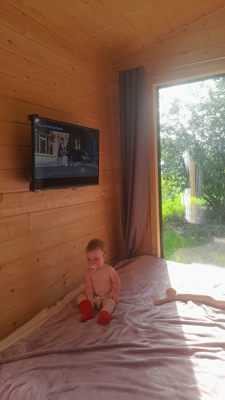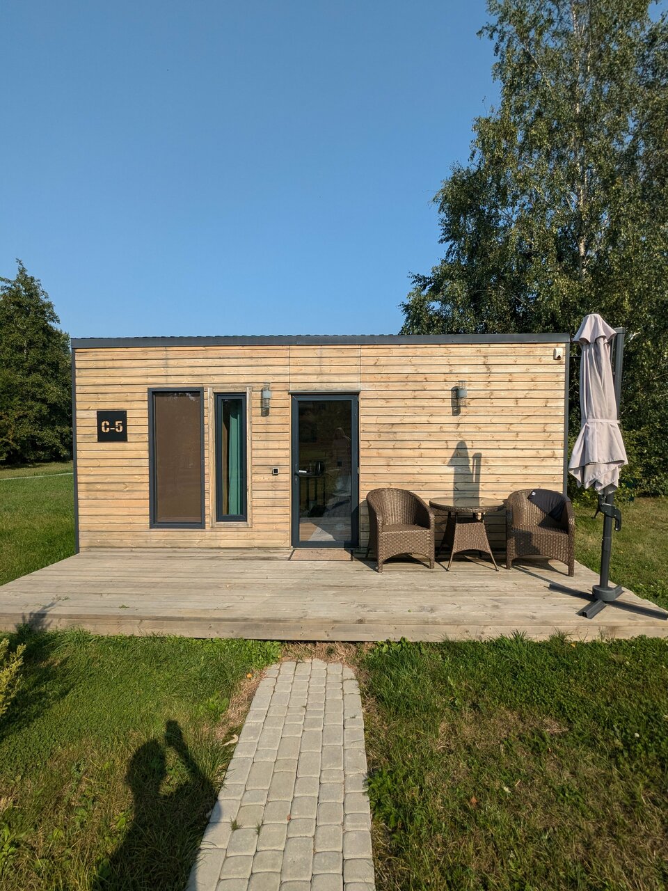 Уютный двухкомнатный домик с собственной террасой и всеми удобствами внутри. Идеальный вариант для гостей с двумя детьми. В модуле тепло зимой и комфортно летом.
