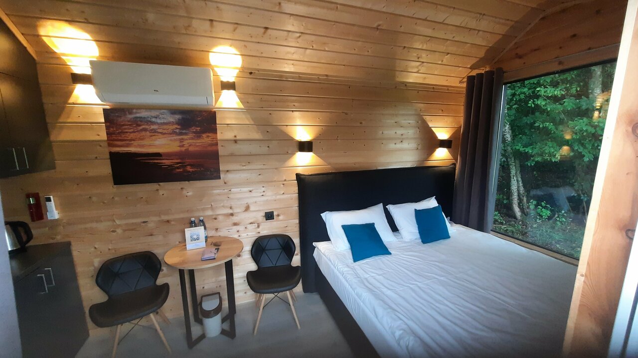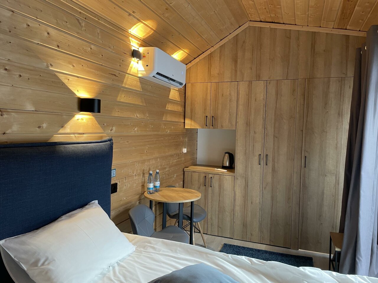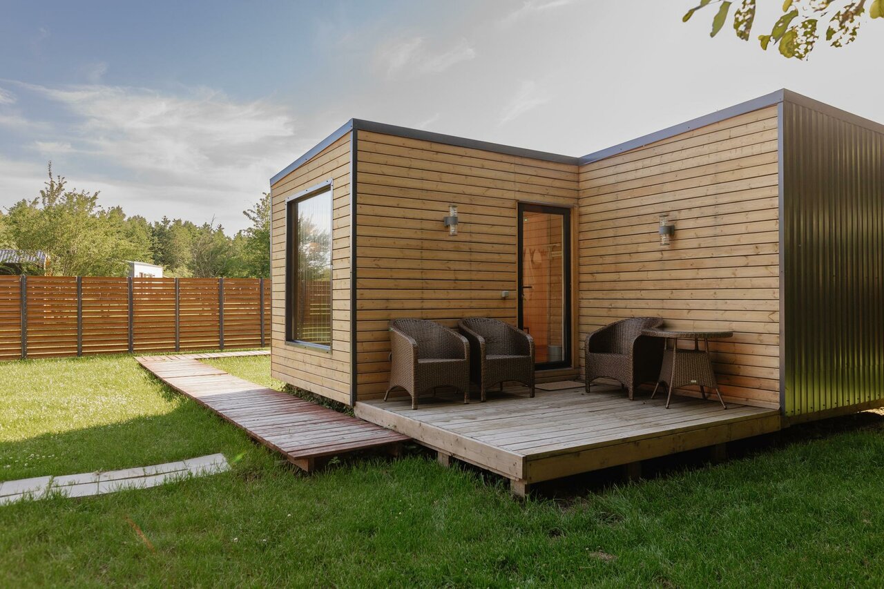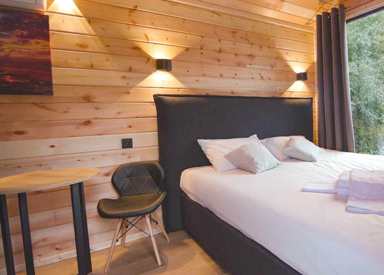 Уютный двухкомнатный домик с собственной террасой и всеми удобствами внутри. Идеальный вариант для гостей с двумя детьми. В модуле тепло зимой и комфортно летом.