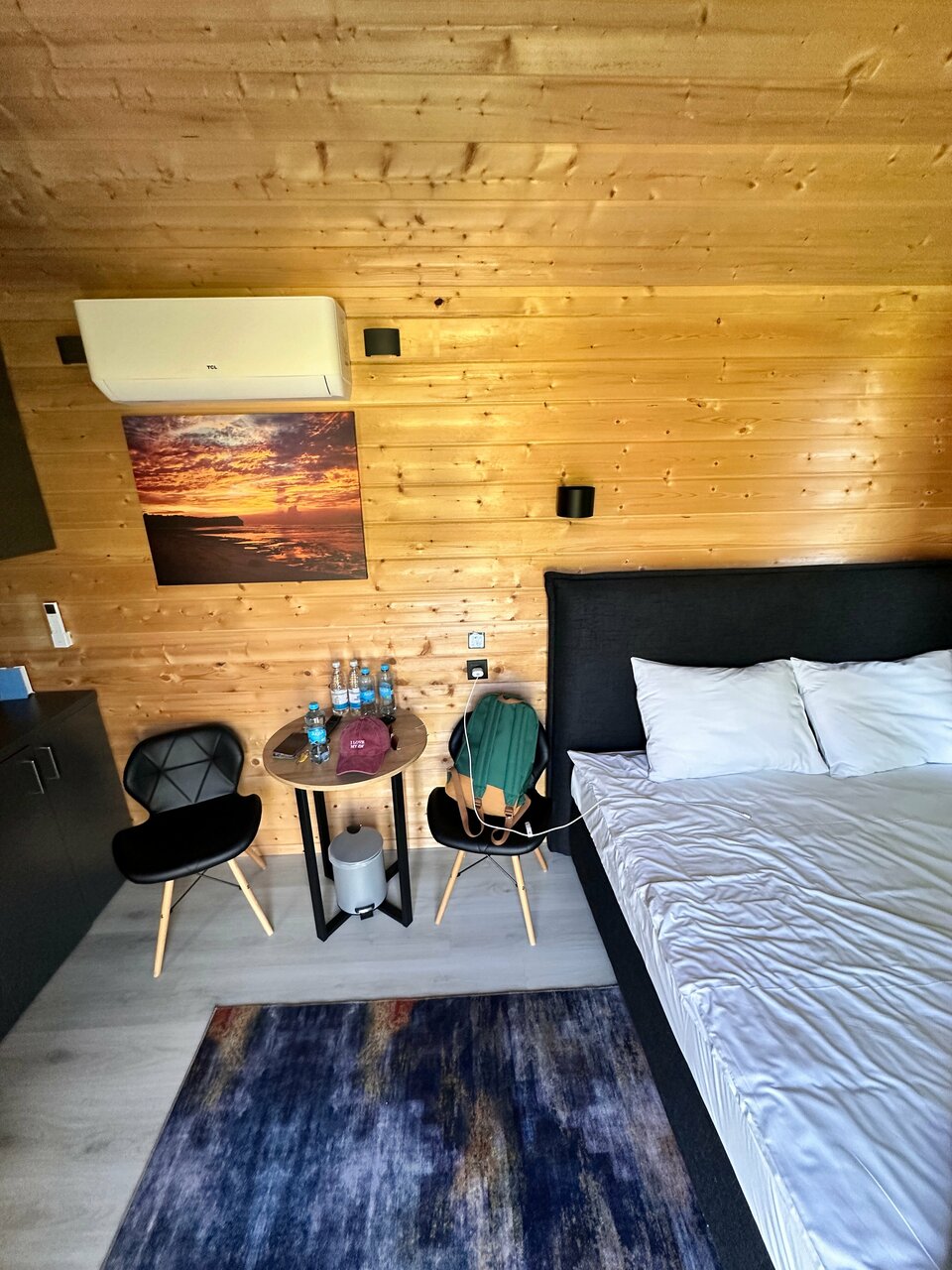 Оч много классных отзывов, тут правда хорошо, но сорри, мы не в таком восторге. - Домики правда супер-маленькие, первые дни совсем не комфортно, хочется вытащить всю мебель на улицу. - Воздуха не хватает, кондиционер охлаждает, но не даёт свежий воздух, бризер на такой площади справился бы. - На сайте написано, что есть всё для пляжа, но плед или полотенце достать не получилось, говорят сайт устарел, а купить это рядом не так то и просто. - За всё время ни разу не убрались и не заменили полотенца. - Был какой-то эвент, в ресторане не стали готовить еду вечером потому что все были заняты эвентом. Ну, доехать до Янтарного можно, но там тоже не так много вариантов и с таксистами нужно договариваться чтобы они поехали по не оч хорошей дороге. Безальтернативненько. + Удобная кровать. + В целом территория милая, персонал тоже. + Море и пляж — супер, вообще никаких вопросов.