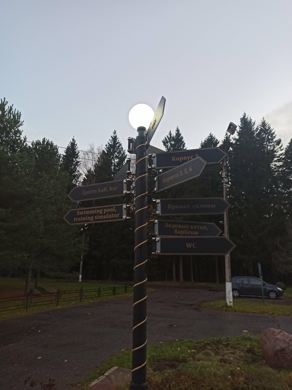 - Наличие футбольного поля, бани, катка.