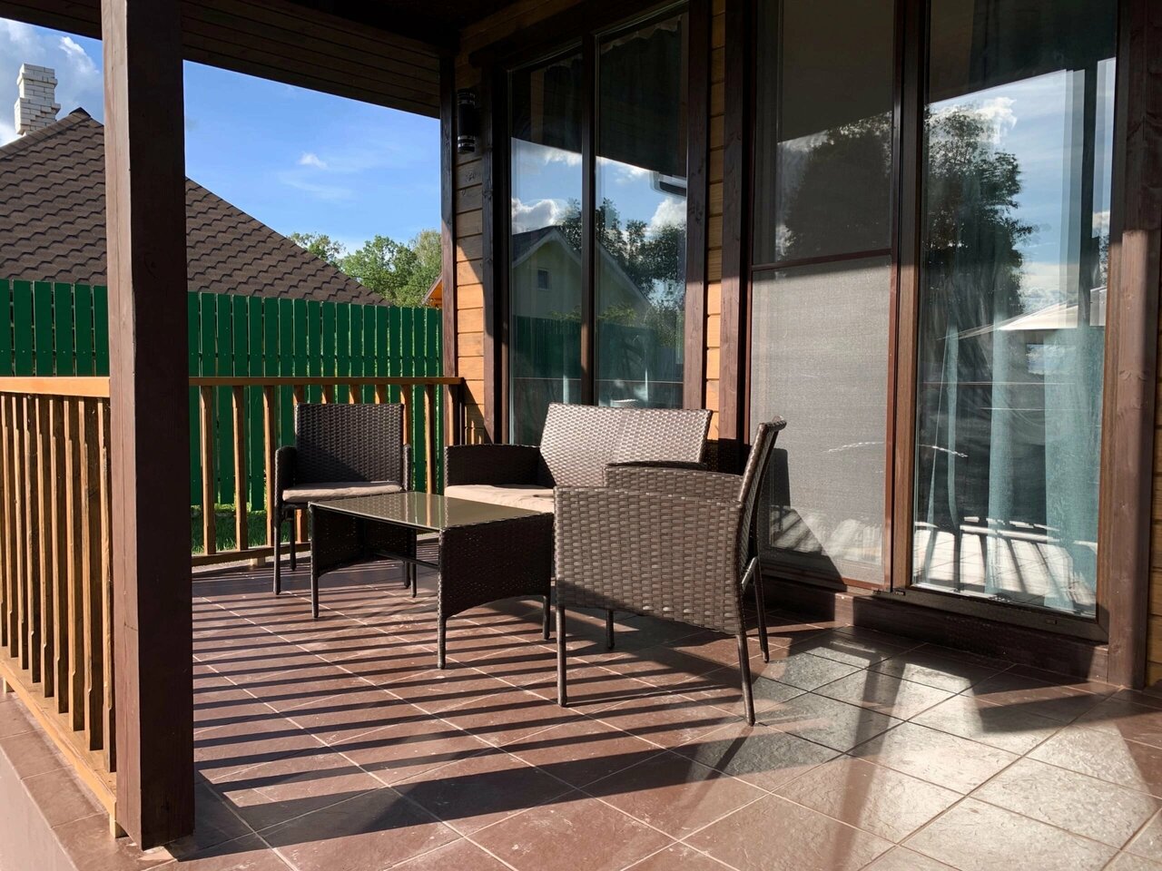 - Отсутствие комаров.; Большая терраса.; Хорошая цена за качество.; Уединенное расположение, вид на озеро.; Полная кухонная утварь, шампура, решетка.