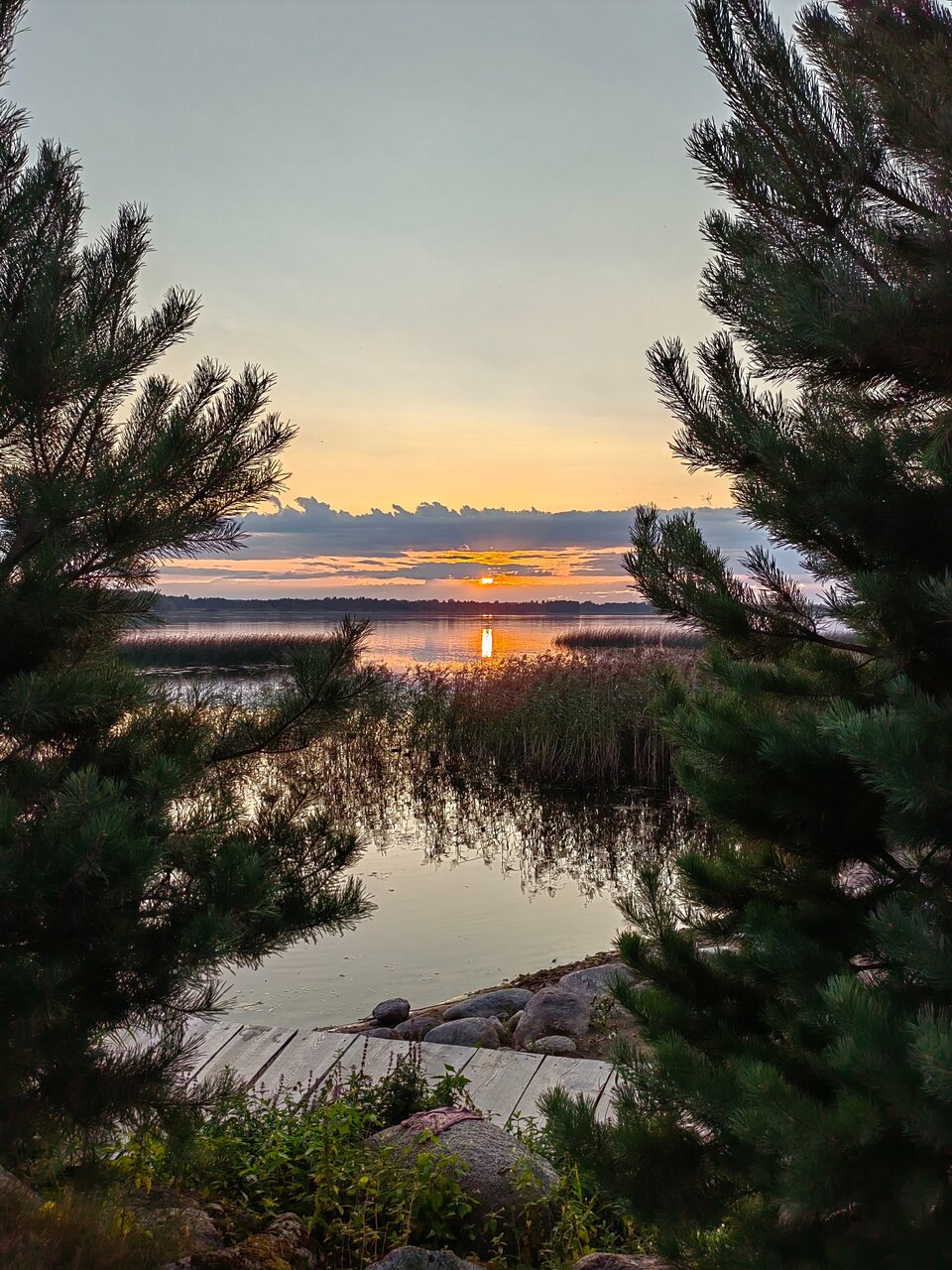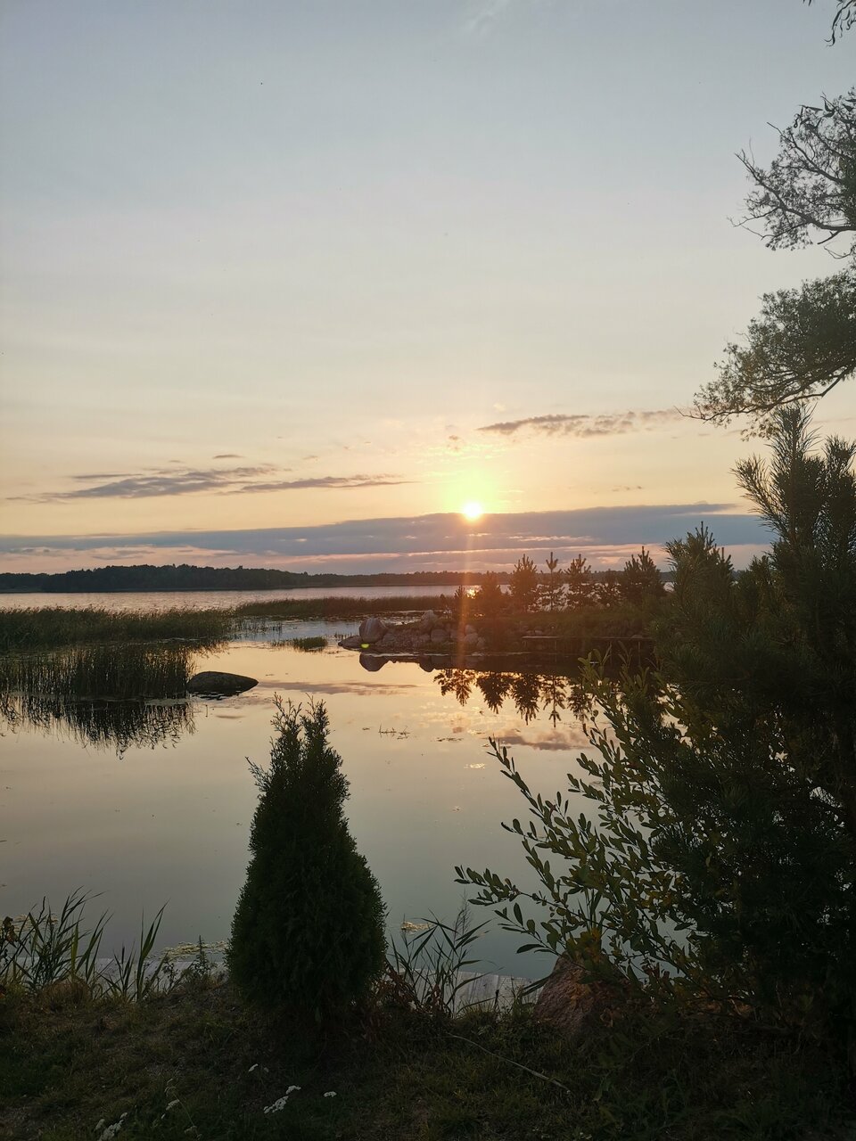 База отдыха на берегу озера, кругом сосны. Коттеджи окнами на озеро, рассвет и закат можно наблюдать не выходя. Номера все удобные, уютные, чистые. Все необходимое имеется. В некоторых коттеджах есть сауна. Персонал вежливый и заботливый. Бываем несколько раз в год, нам очень там нравится. И да, рыбалка!!