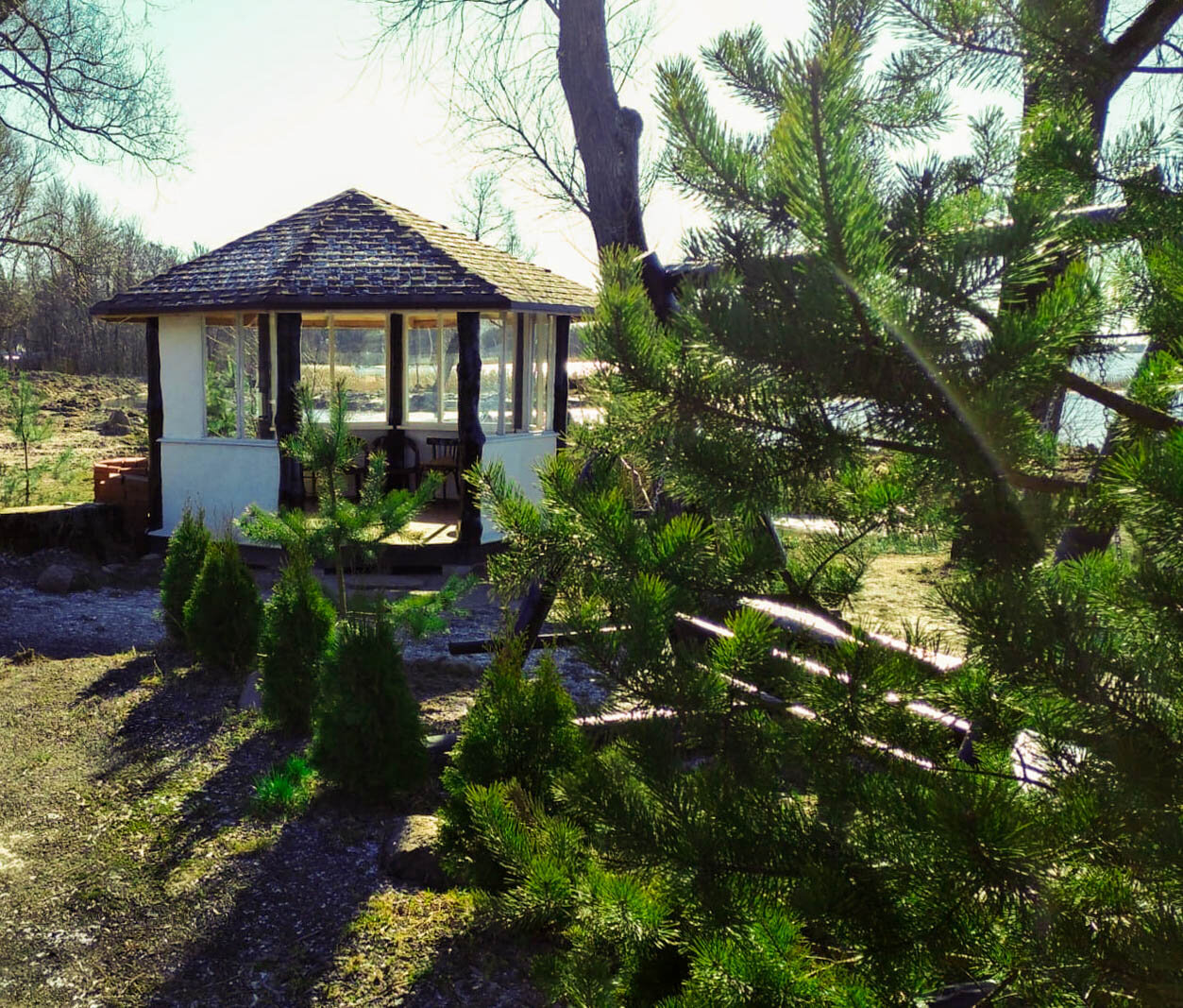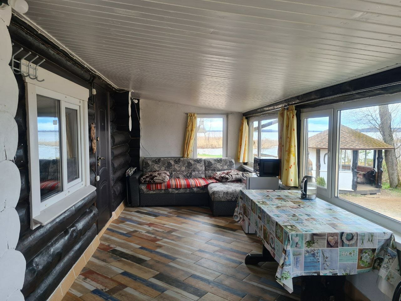 находится в красивом месте. сейчас в стадии ландшафтного дизайна летом будет супер. Отопления в домиках на уровне на кухне холодильник индукционная плитка посуда , душ санузел на уровне, есть фен и даже тапочки. Телевизор работает и интернет на уровне. Для рыбаков есть лодка и мангалы рыба наверно должна быть но это другая история.